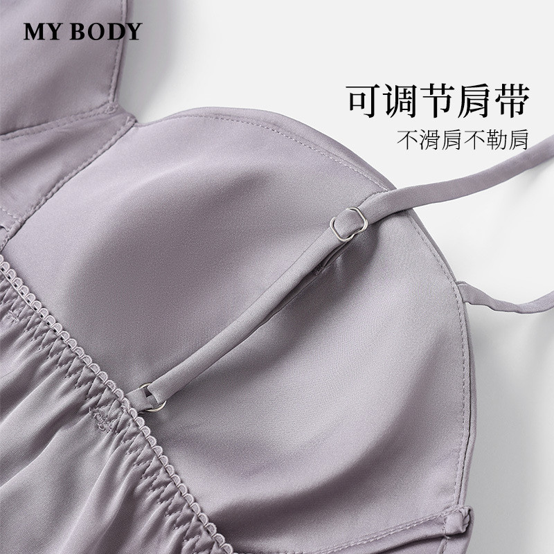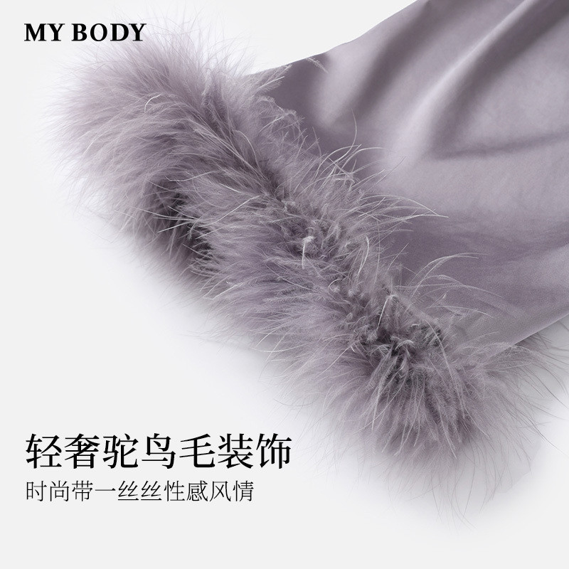 商场同款MYBODY冬季新款睡袍轻奢鸵鸟毛带胸垫性感吊带浴袍两件套