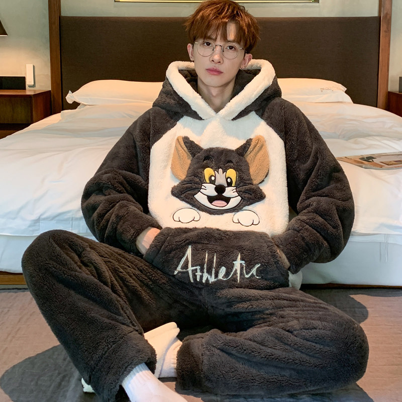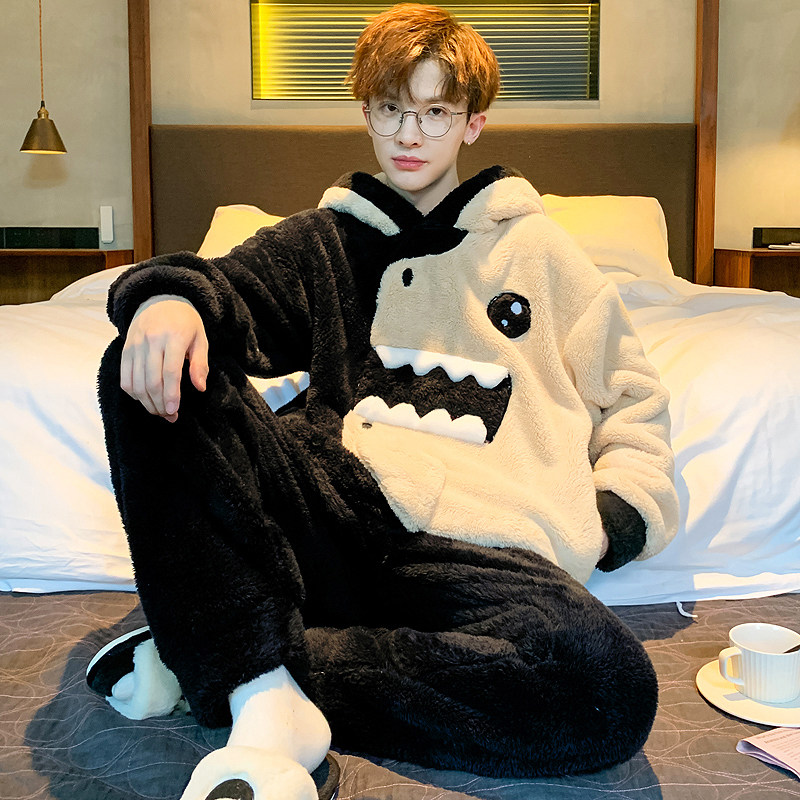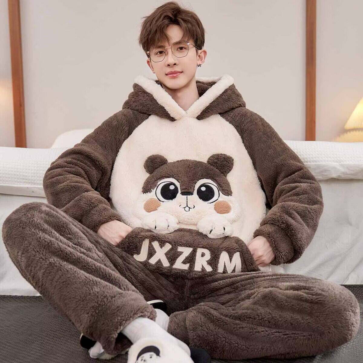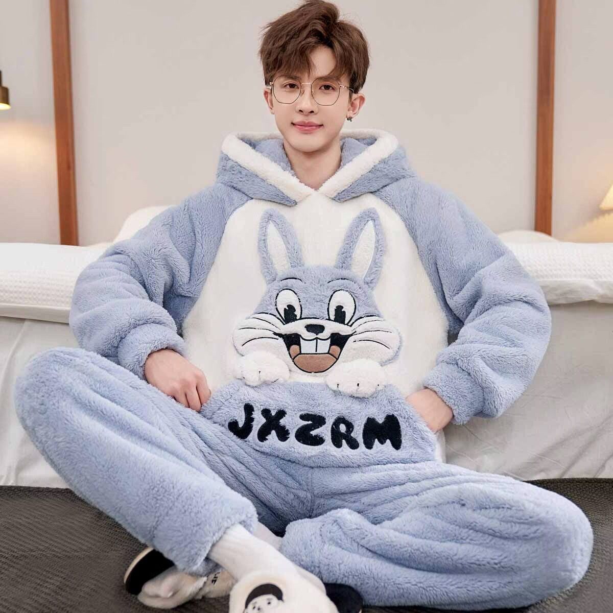 睡衣男冬季珊瑚绒双面绒加厚青少年卡通冬天保暖法兰绒家居服套装