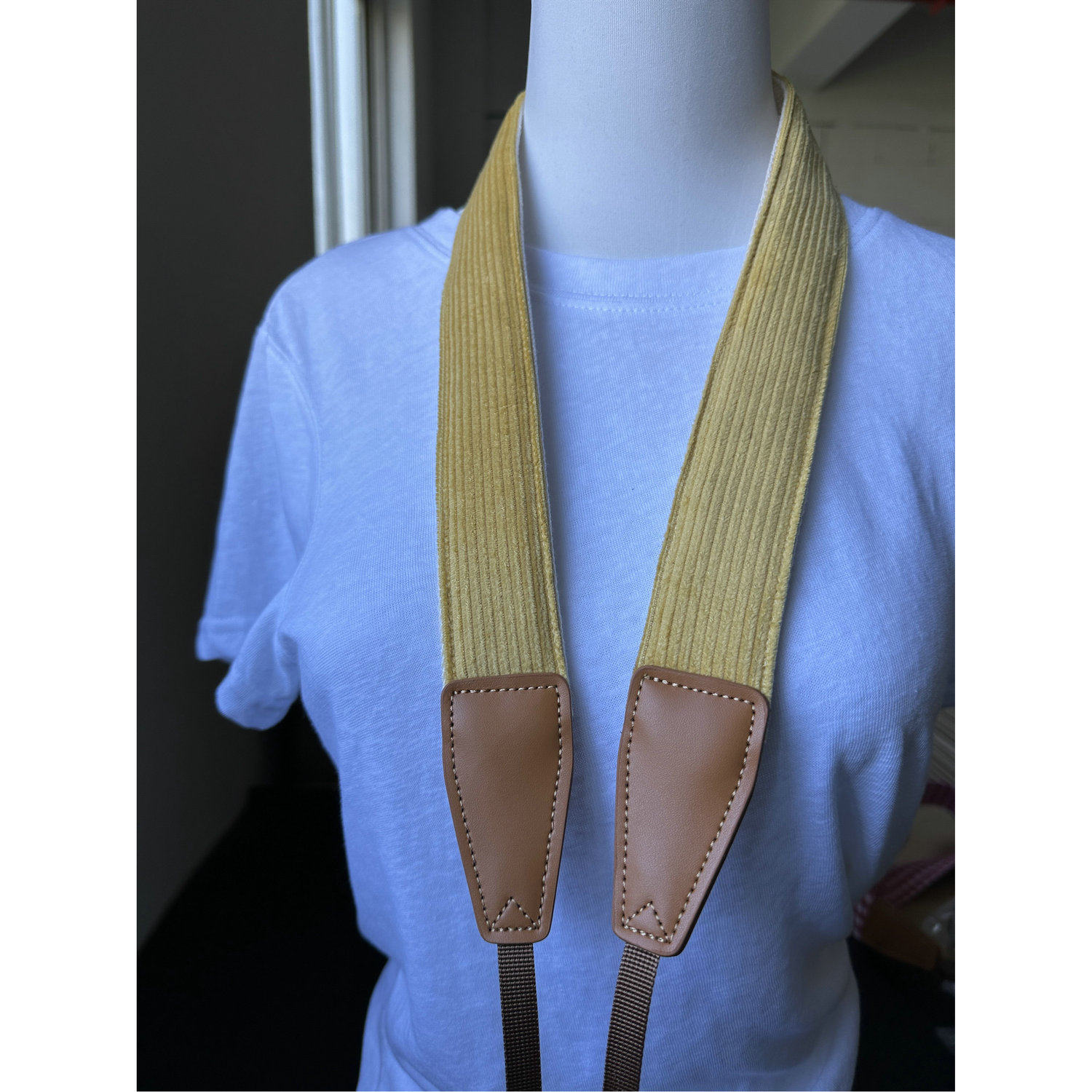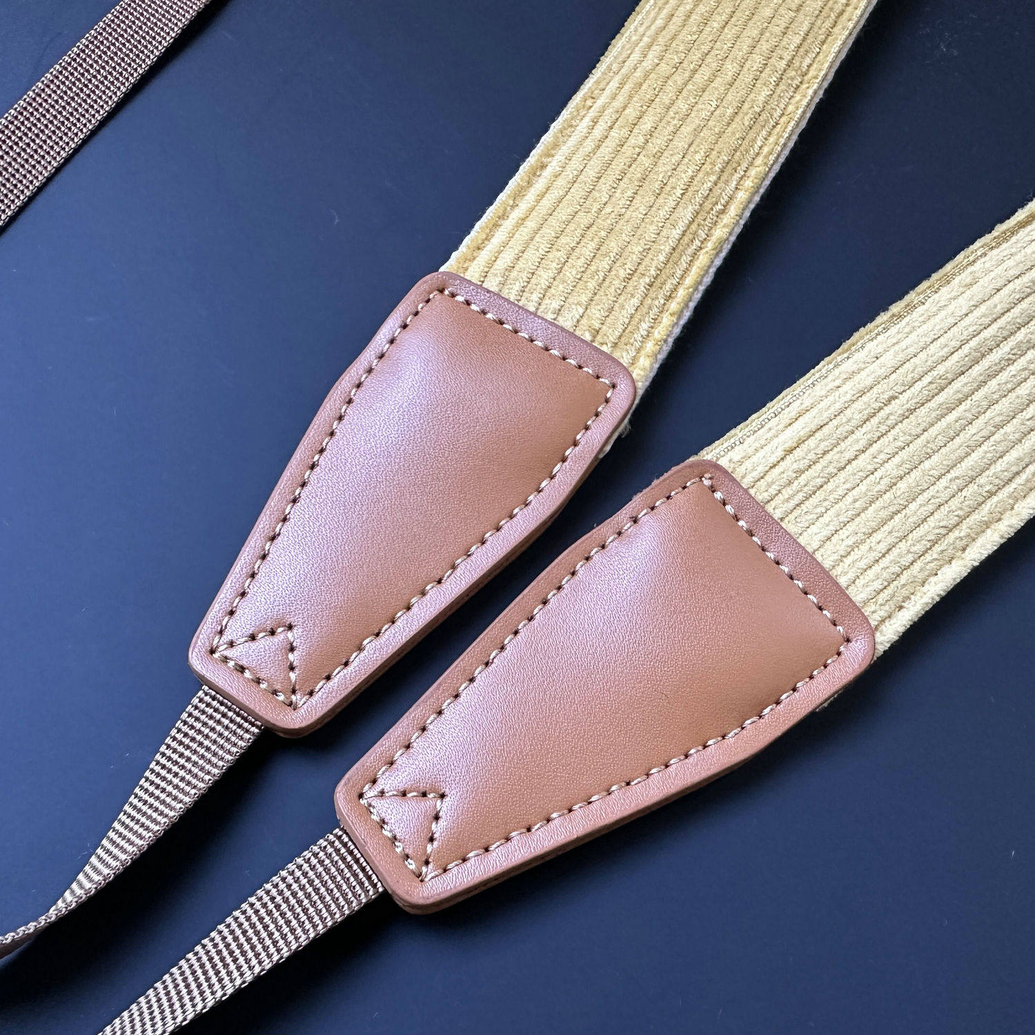 UNIKSTRAP原创带海绵垫层姜黄灯芯绒单反数码照相机背带真皮皮头