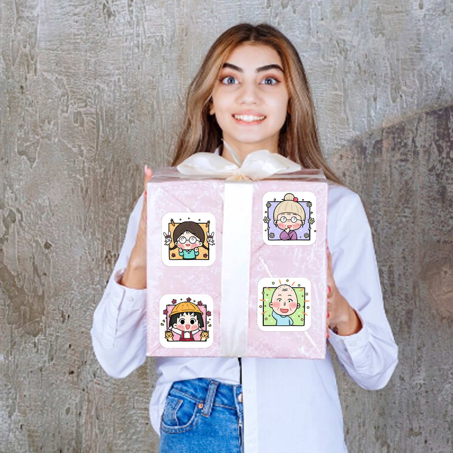 500贴/卷樱桃小丸子爷爷贴纸手账diy素材礼品烘焙装饰包装封口贴