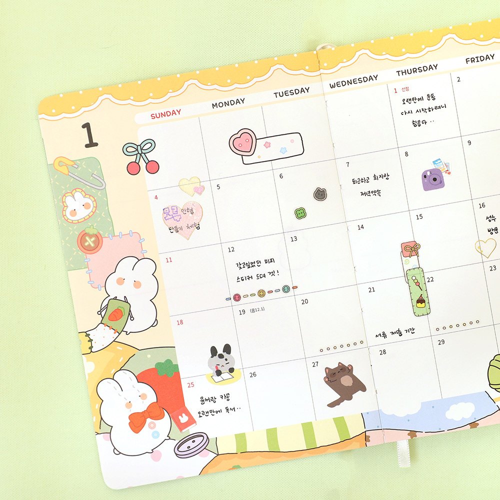 韩国pleple可爱兔兔全彩页2026日程本周计划胶套手账日记本子ins