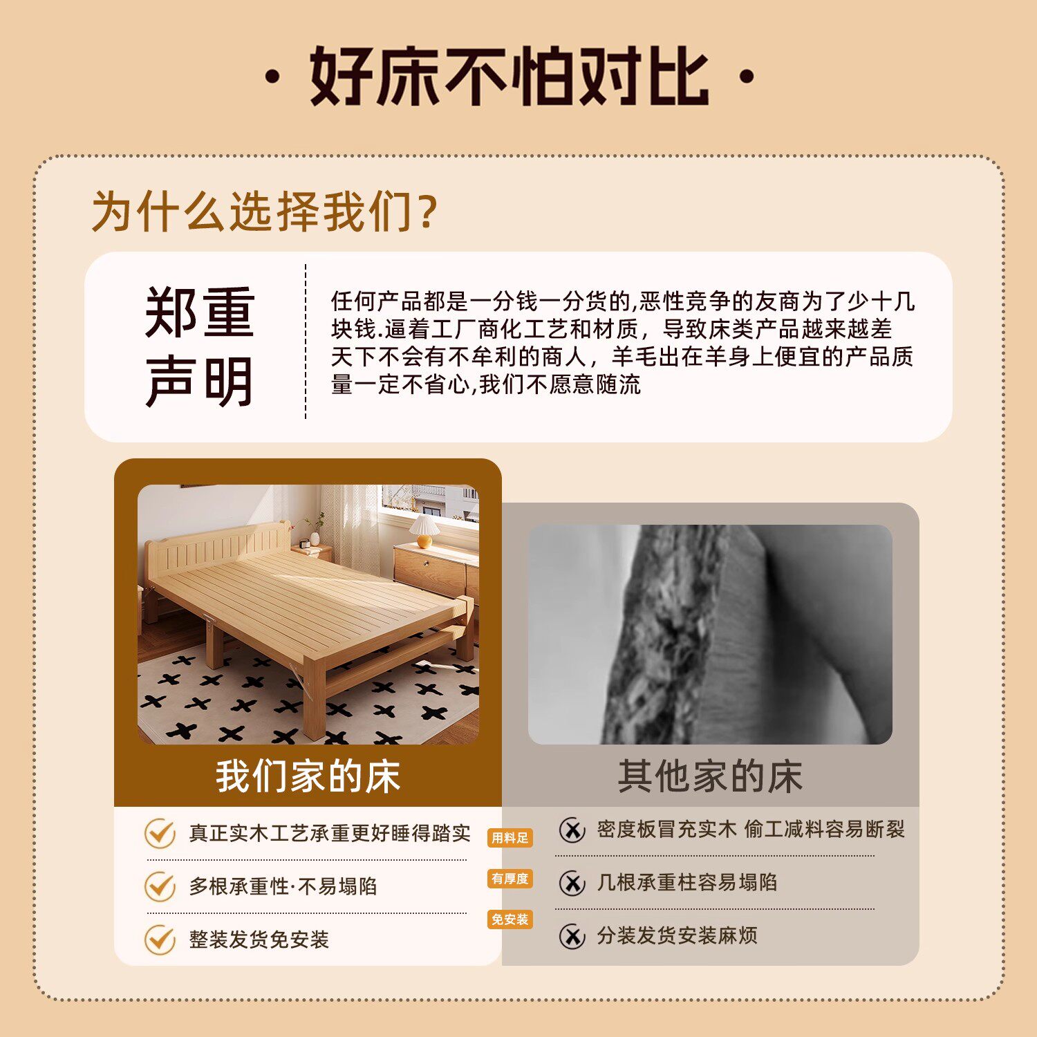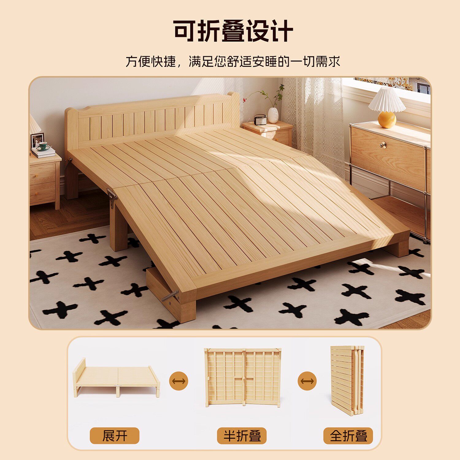 全实木折叠床单人家用出租房床加厚成人可折叠硬板加高松木免安装