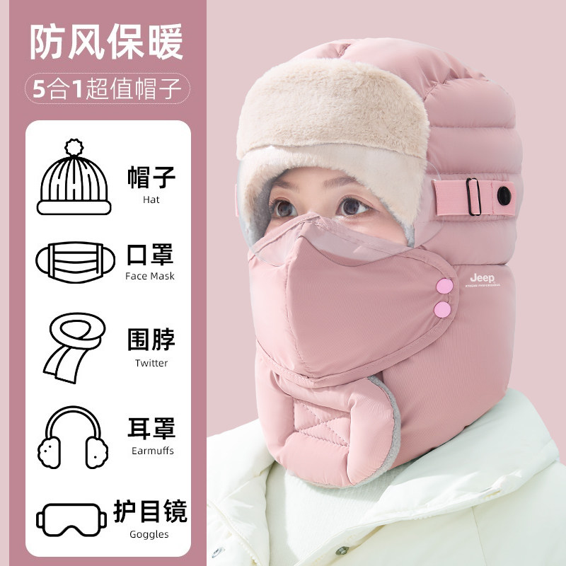 jeep吉普雷锋帽子女士冬季保暖加绒加厚户外骑行防风防寒棉帽女冬