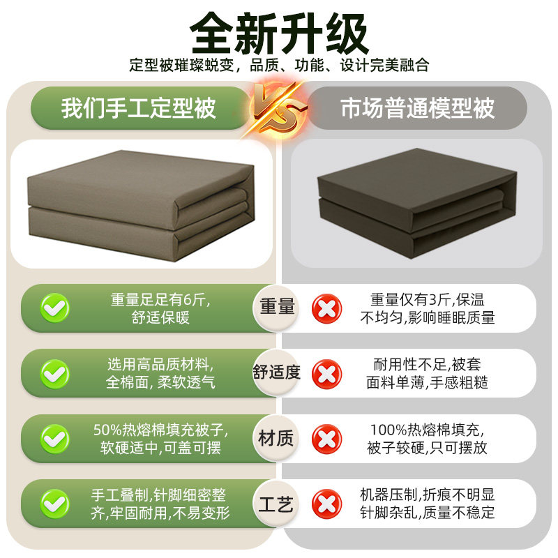 正品可盖内务被定型热熔被豆腐块棉被军绿色军训被纯棉模型被子