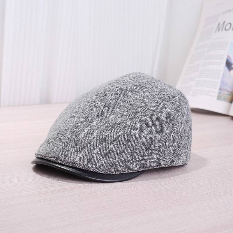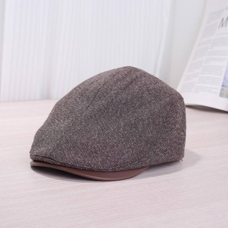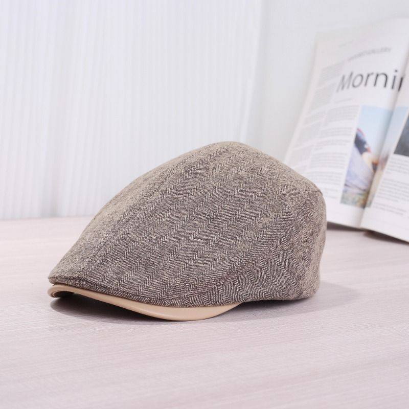 英伦风复古棉麻前进帽子女春秋季网红时尚百搭报童贝雷帽灰色休闲