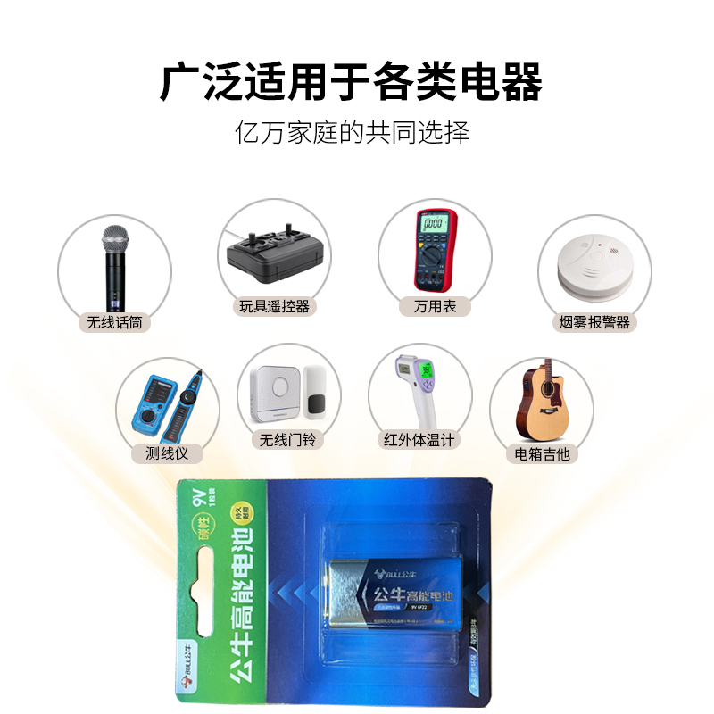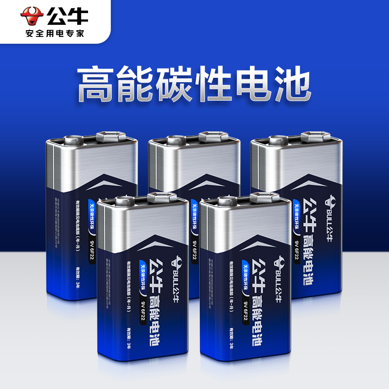 公牛9v电池方块电池6F22方形叠层遥控器无线话筒9伏万用表9号干电池烟雾报警器九伏碳性非充电9V正品6f22型