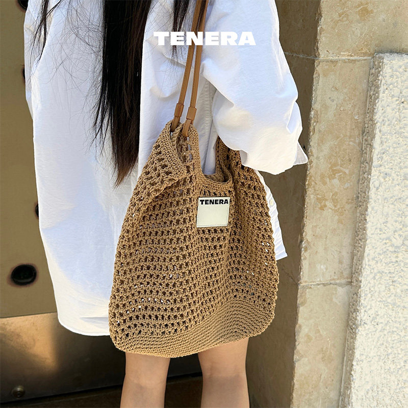【田曦薇同款】TENERA夏日度假编织水桶包通勤单肩包女小众托特包