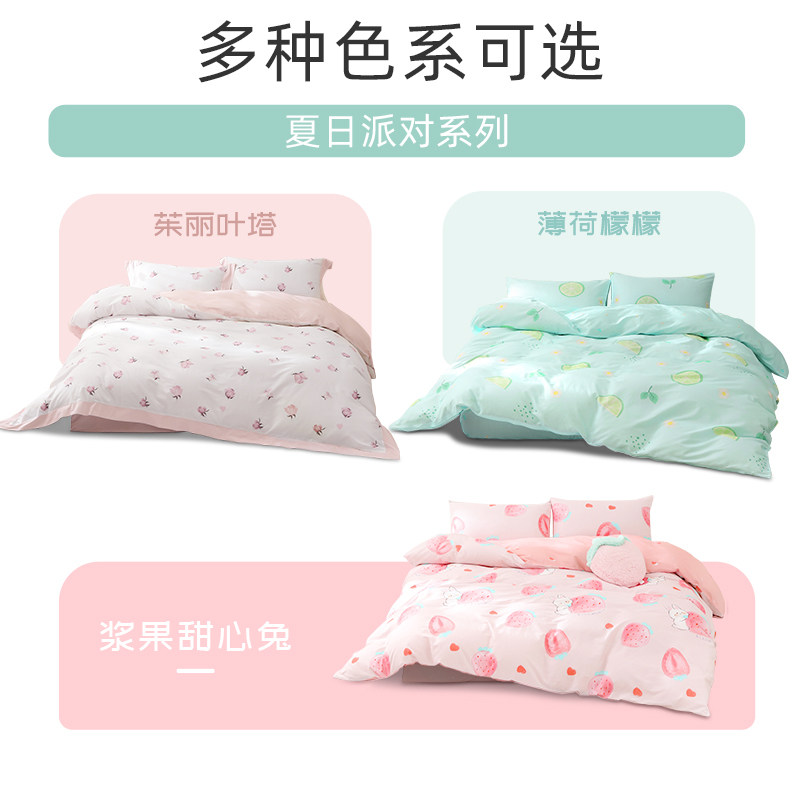 无印良品全棉四件套学生宿舍纯棉卡通儿童被套床单三件套床上用品