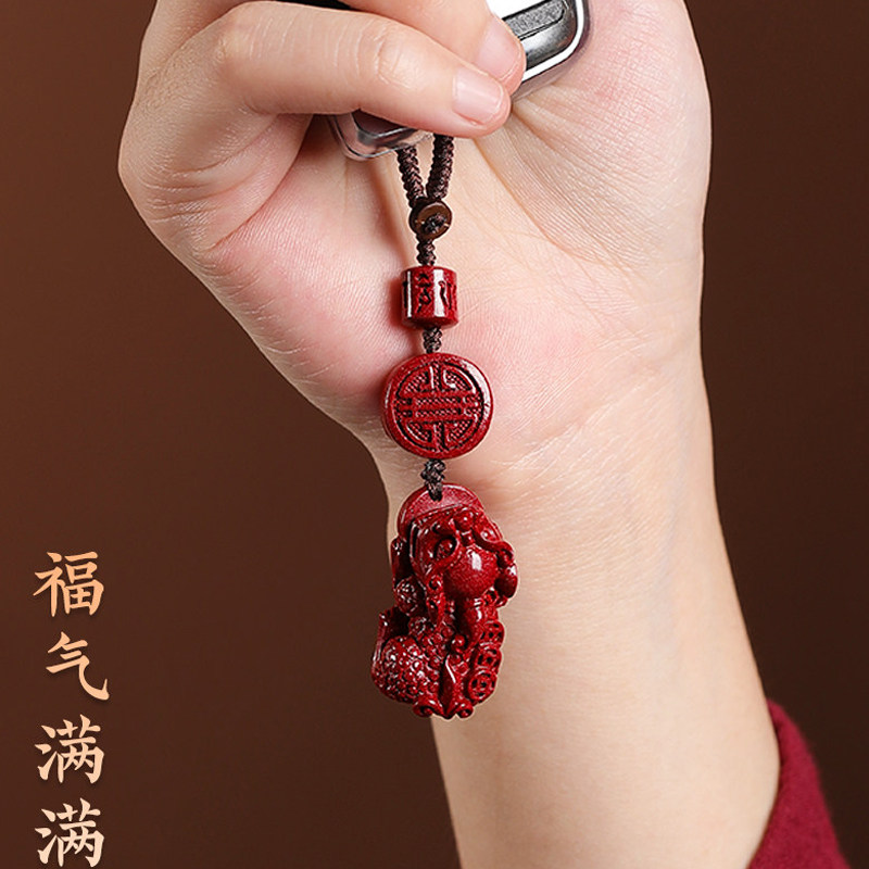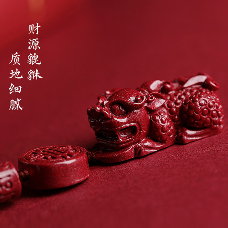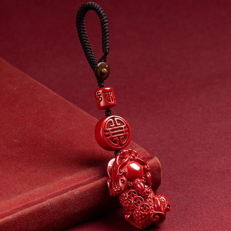 【福禄招财】朱砂六字真言貔貅钥匙扣挂件