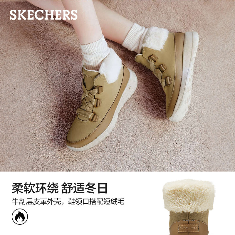 斯凯奇冬靴冬季女鞋加绒保暖雪地靴棉鞋厚底增高休闲运动鞋时装靴