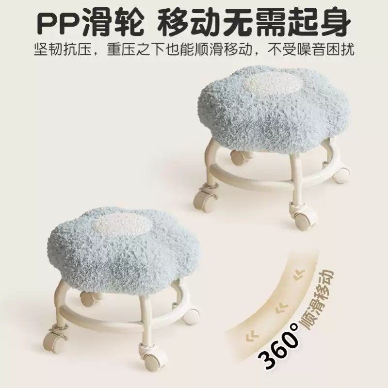 万向轮小凳子滑轮移动椅子家用矮凳客厅儿童圆凳换鞋板凳美缝擦地