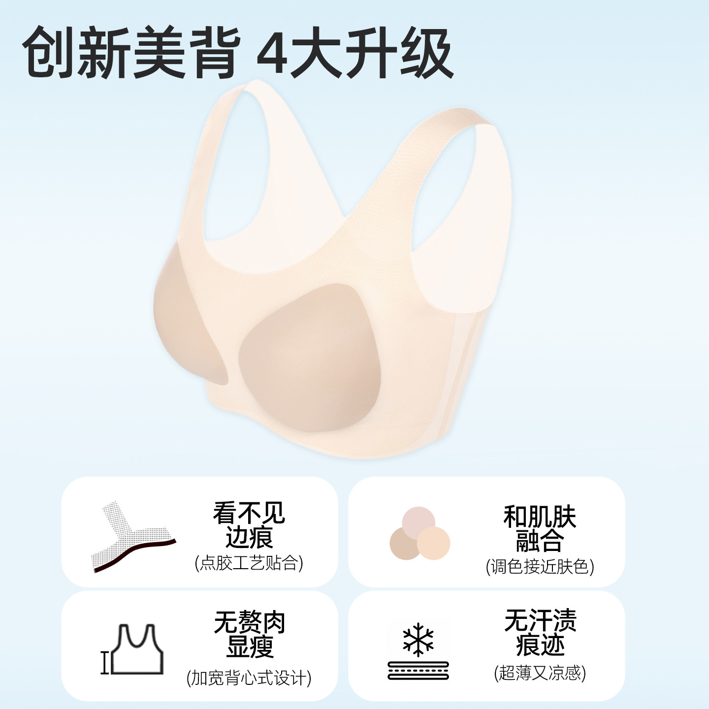 创新无痕美背吸湿凉感隐形好穿搭聚拢上托