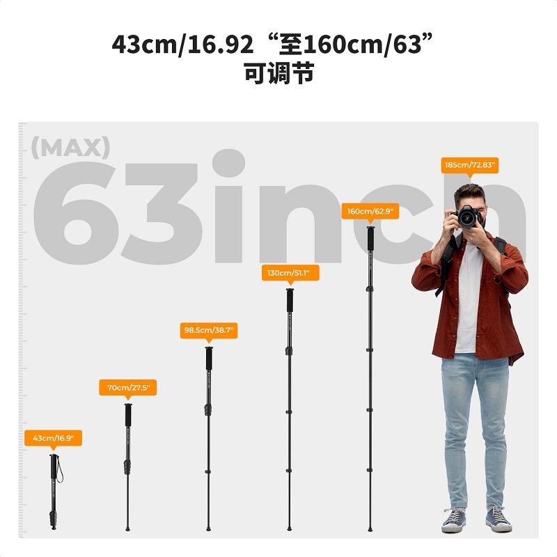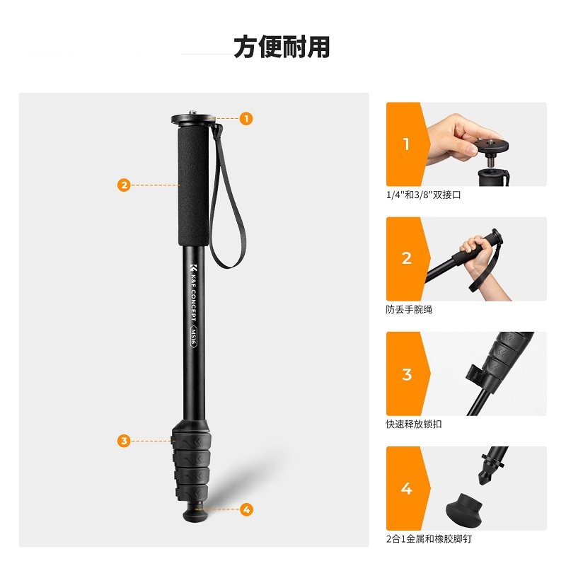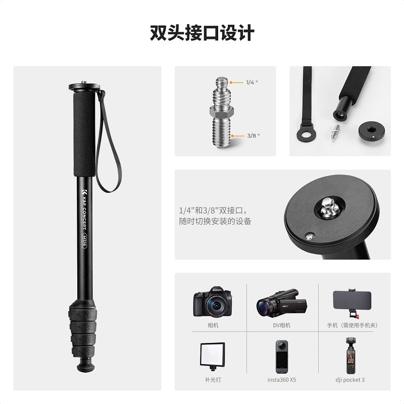 KFCONCEPT卓尔MS16独脚架便携单反微单相机演唱会摄影支架手机拍照自拍杆户外登山婚礼跟拍摄影摄像vlog支架