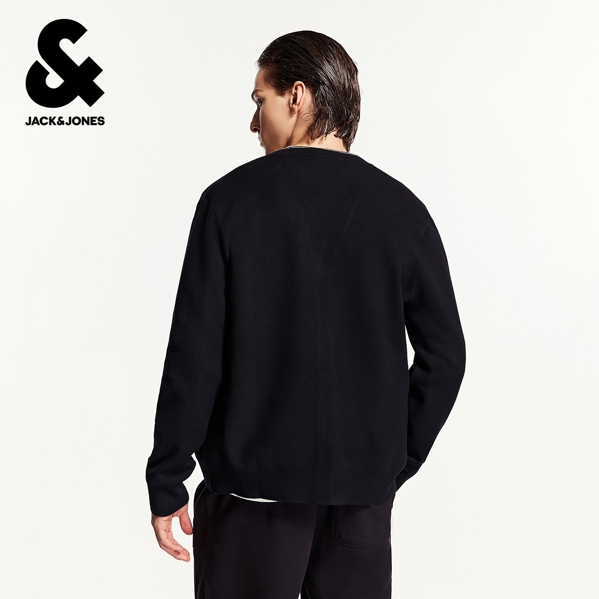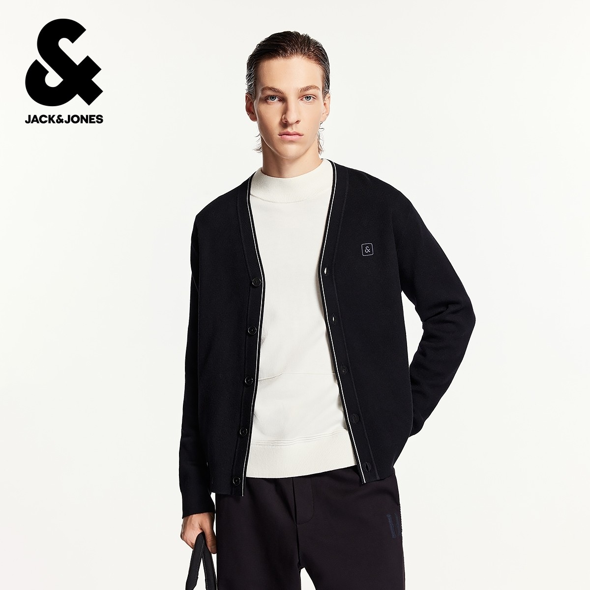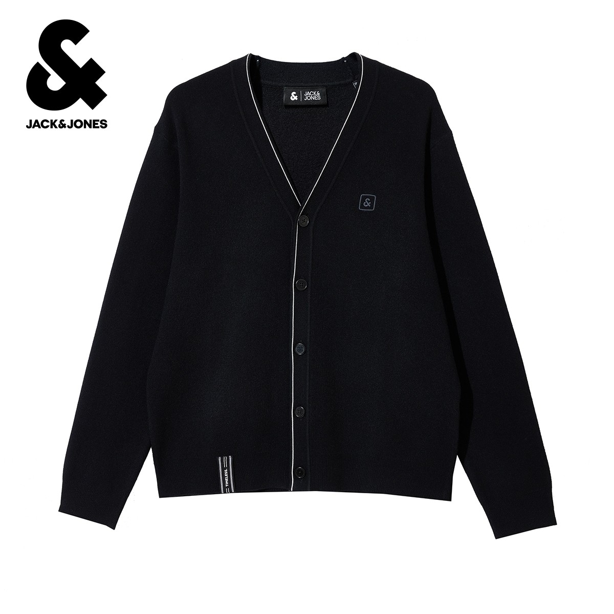 杰克琼斯男装秋季毛衣针织衫字母贴布刺绣日常款纯色开衫长袖外套