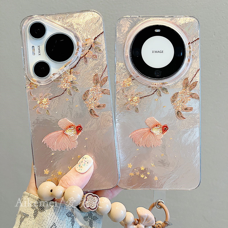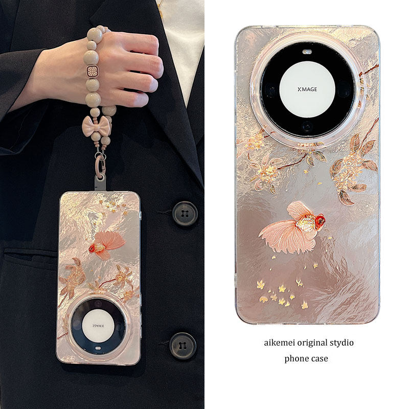 适用华为mate60pro+新款手机壳mate70pro+中国风新中式落叶好运锦鲤Mate40pro链条挂绳mate50pro双层防摔男女