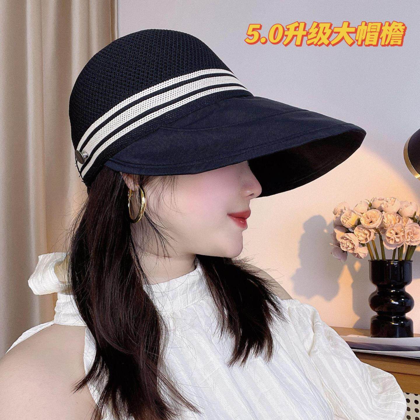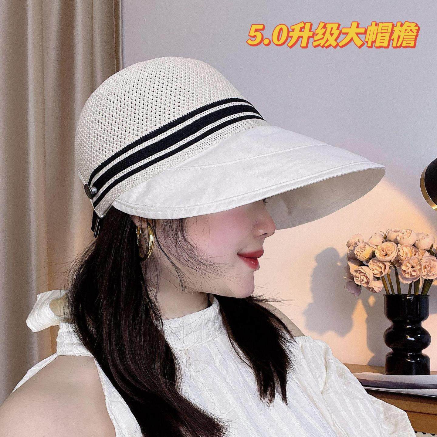 新款加长帽檐网顶鸭舌帽女春夏时尚百搭遮阳户外旅游防晒帽可挂