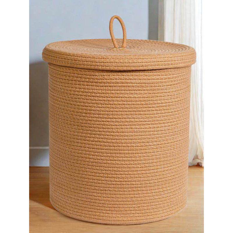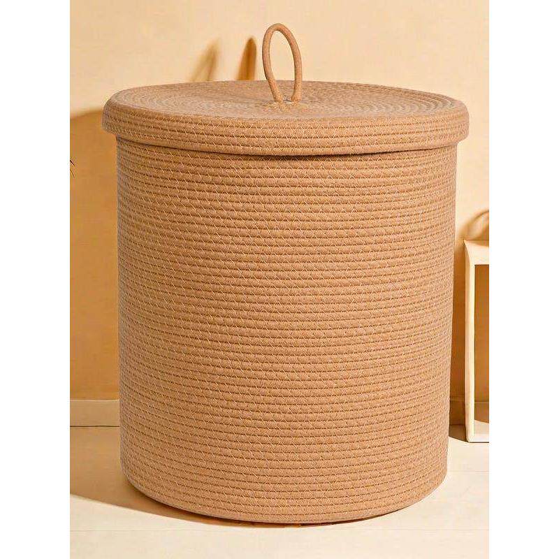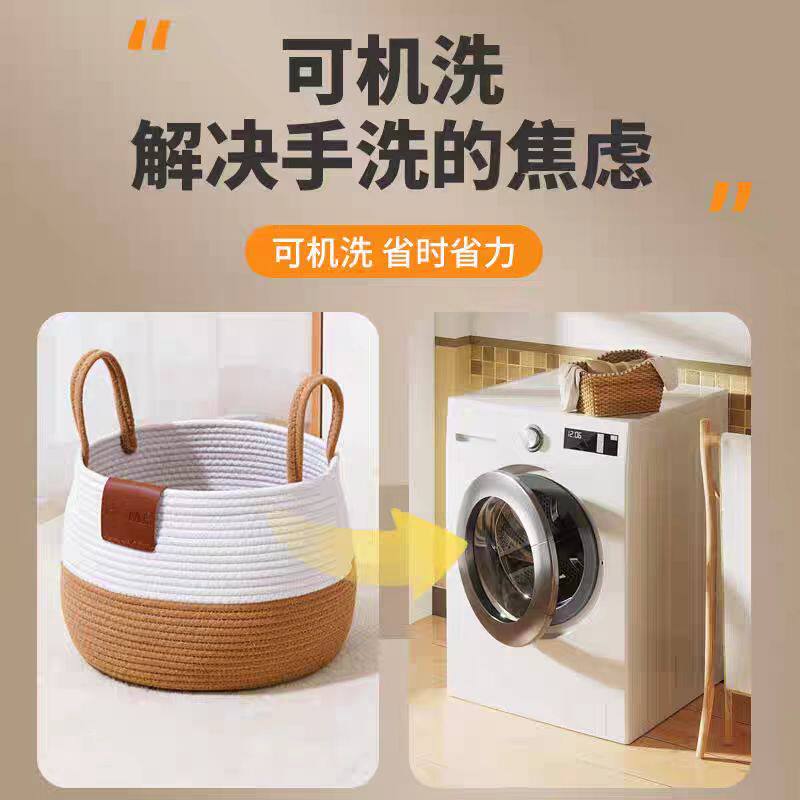 收纳桶带盖棉线编织收纳筐袜子脏衣篮衣服篓子收纳篮手工零食玩具