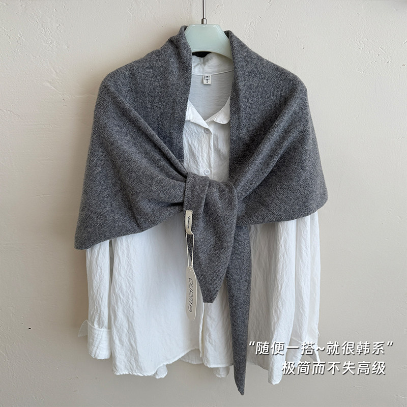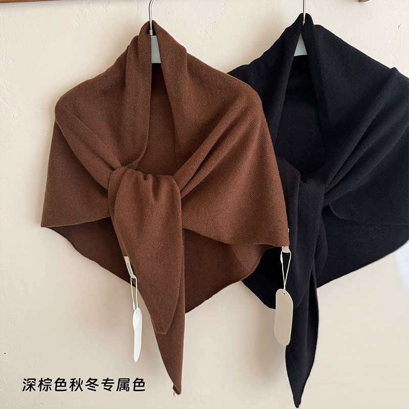2025新款韩系纯色针织三角围巾秋冬外搭保暖护颈围脖时尚百搭披肩