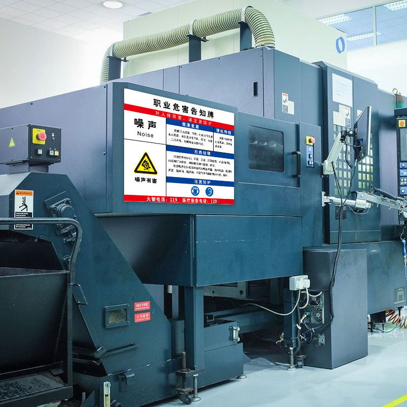 职业危害警示标识牌卫生告知卡噪音噪声有害必须请戴口罩耳塞车间注意安全通风防尘提示指示告知牌警示牌贴纸