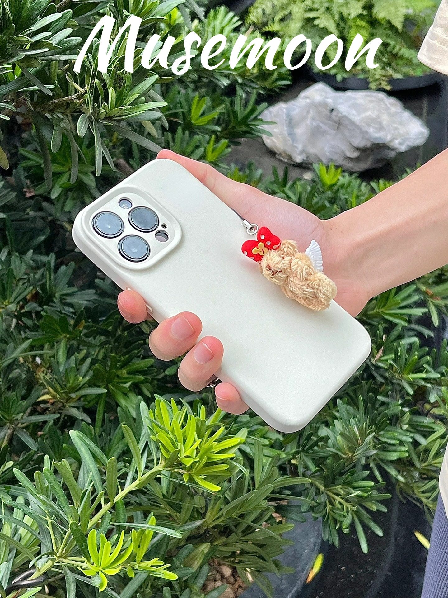 MUSEMOON小众ins古董白天使小熊iphone15/16ProMax真液态硅胶手机壳软糯全包防摔手游苹果13保护套毛绒挂件14