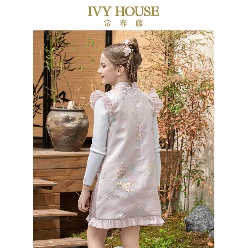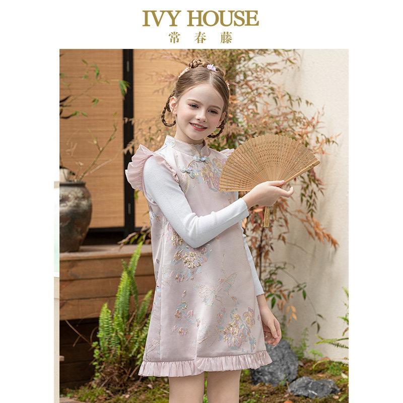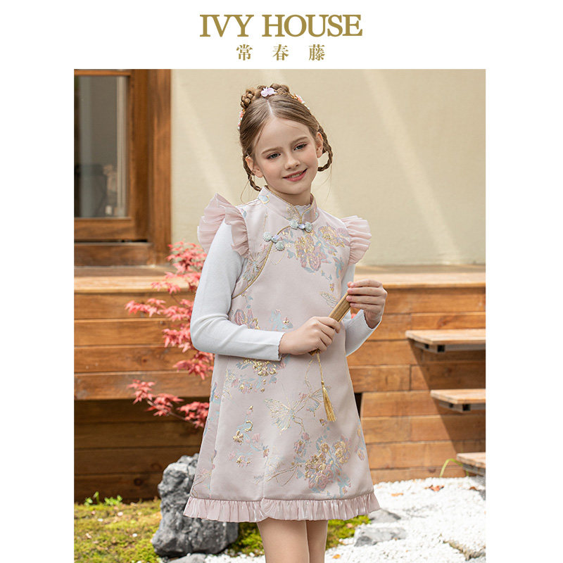 IVY HOUSE常春藤儿童装女童秋季款 新中式旗袍国风连衣裙温暖加绒