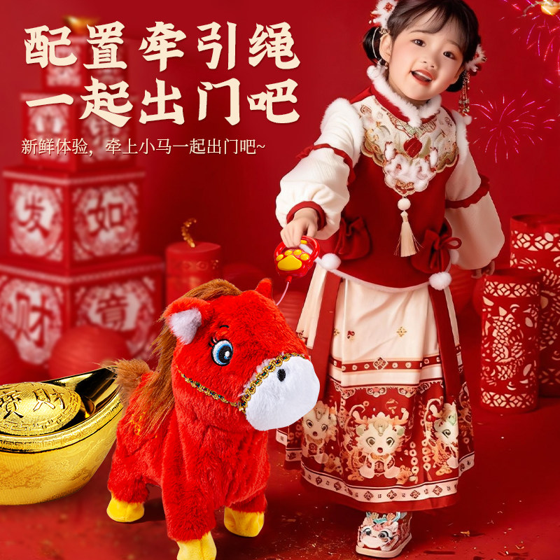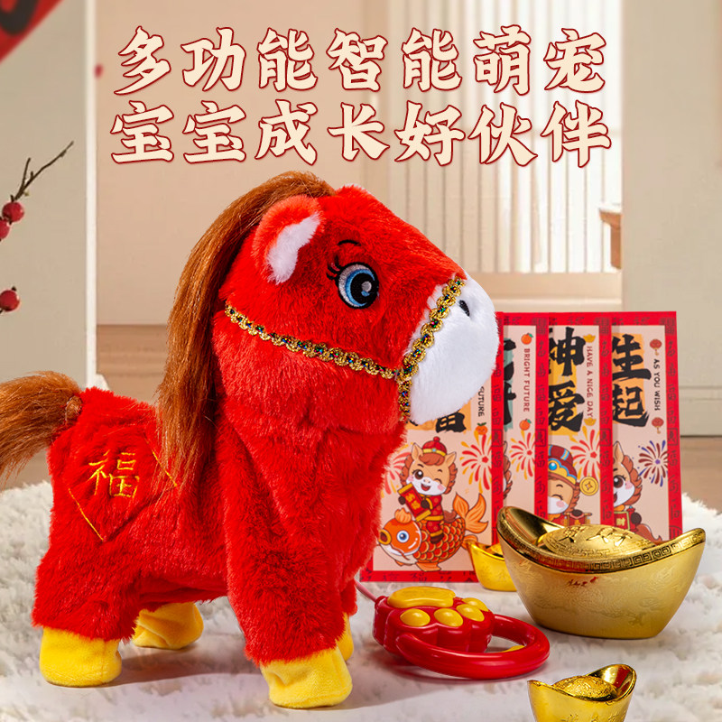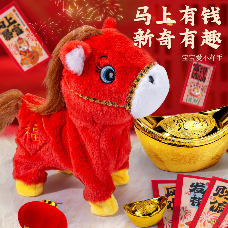 2026马年吉祥物公仔生肖小马玩偶电动毛绒玩具布娃娃男女新年礼物