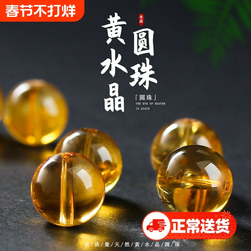 水晶散珠串珠9A巴西暴力黄水晶9A多宝手串配珠佛珠手链DIY配件