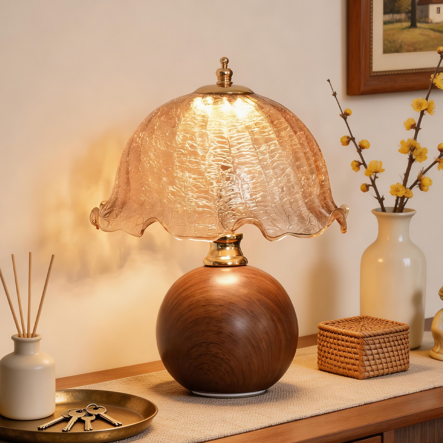 中古vintage实木台灯侘寂风卧室高级感新中式复古氛围床头灯美式