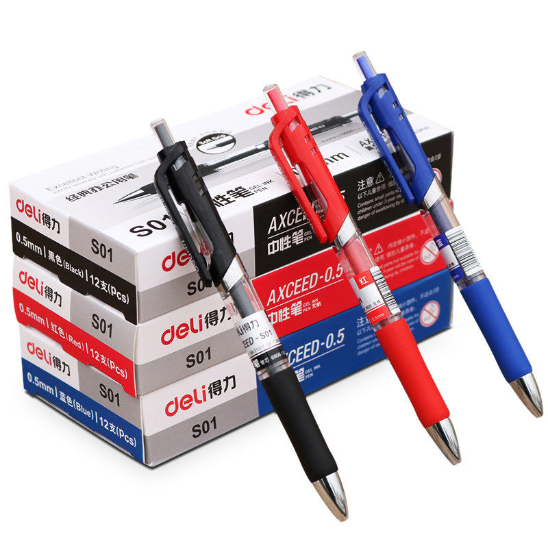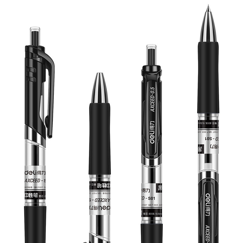 得力中性笔0.5mm黑色办公学生考试用按动中性签字碳素水笔芯批发