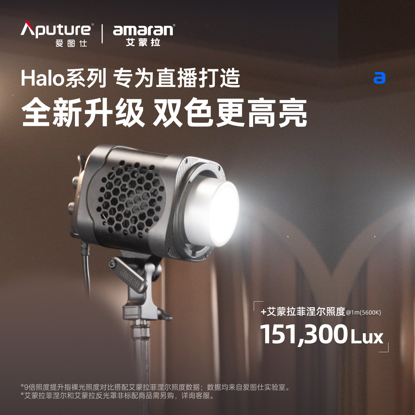 【新品上市】Aputure/amaran 爱图仕Halo 300x 艾蒙拉300W可调色温直播视频补光灯 摄影拍照发丝打光常亮灯