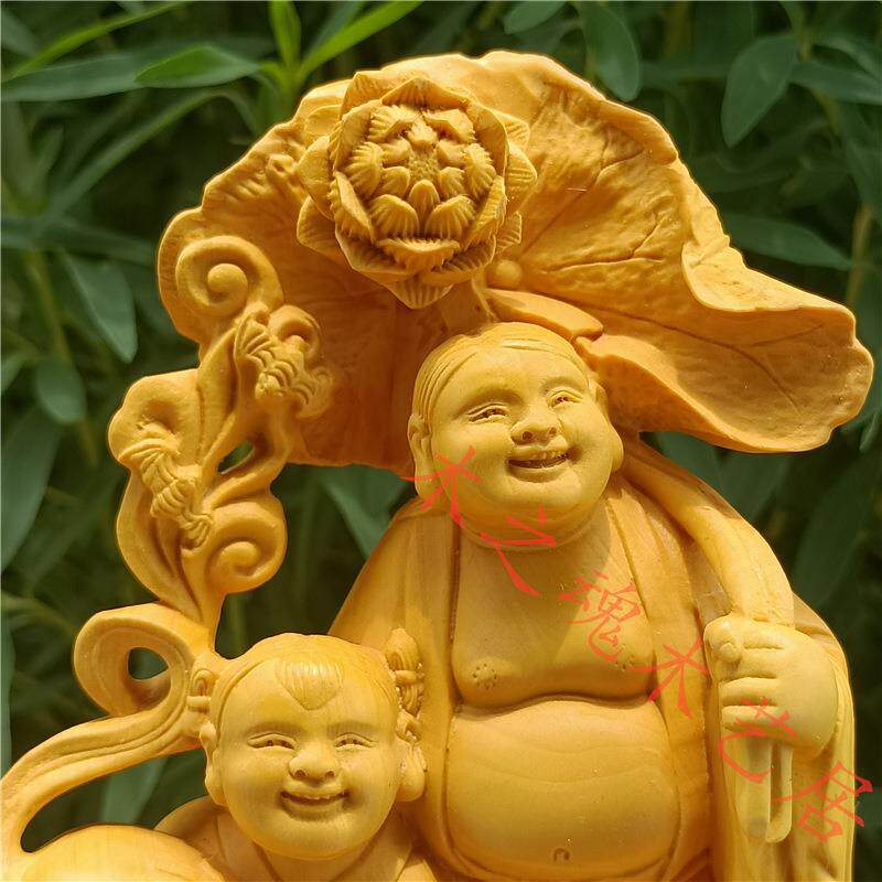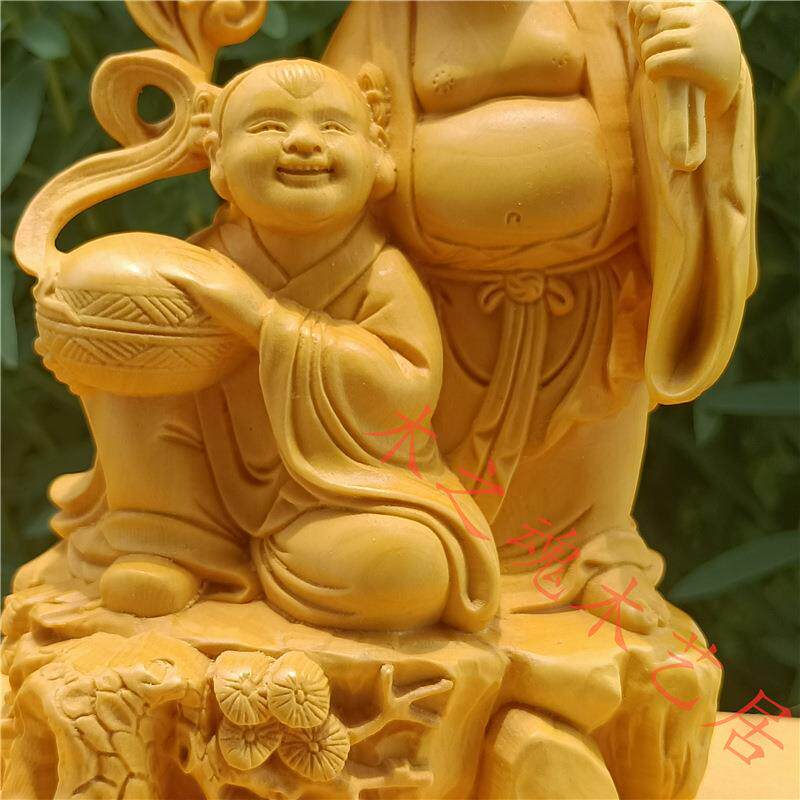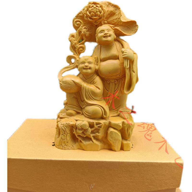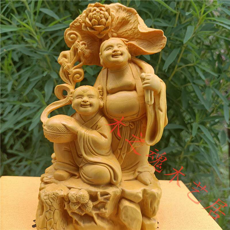 仿古黄杨木雕刻寒山二圣实木装饰摆件人物家居二仙创意工艺品送礼