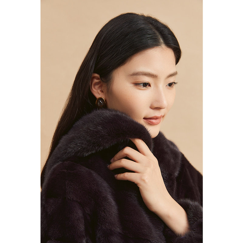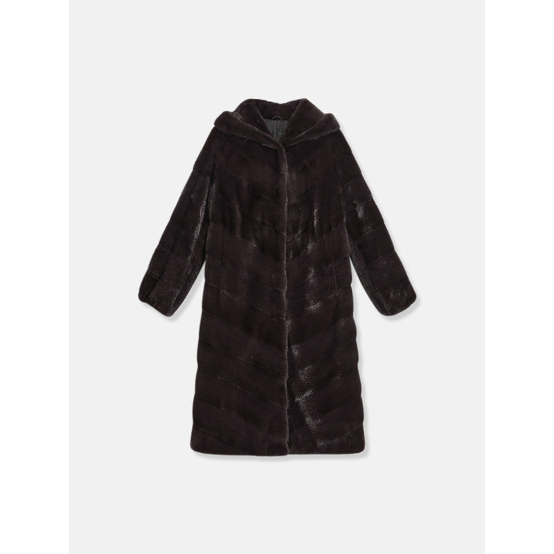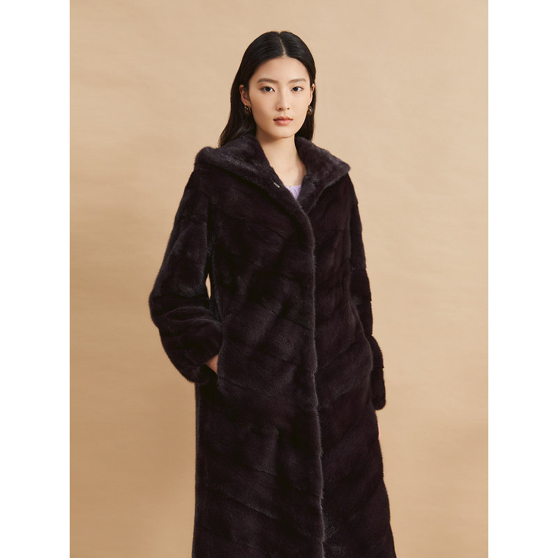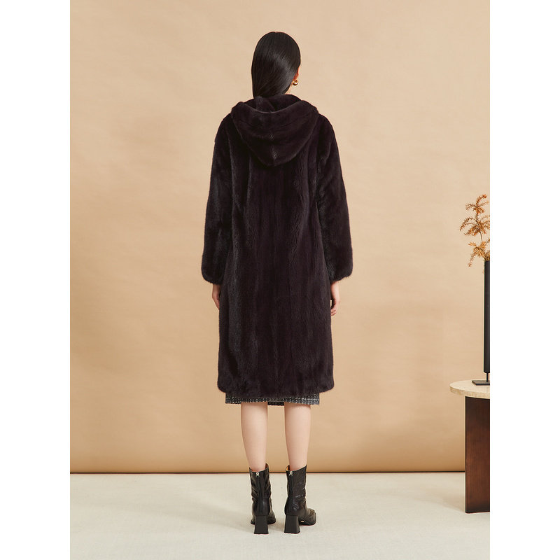 YINER音儿专选女装冬季时尚优雅奢感长款连帽水貂毛皮草外套