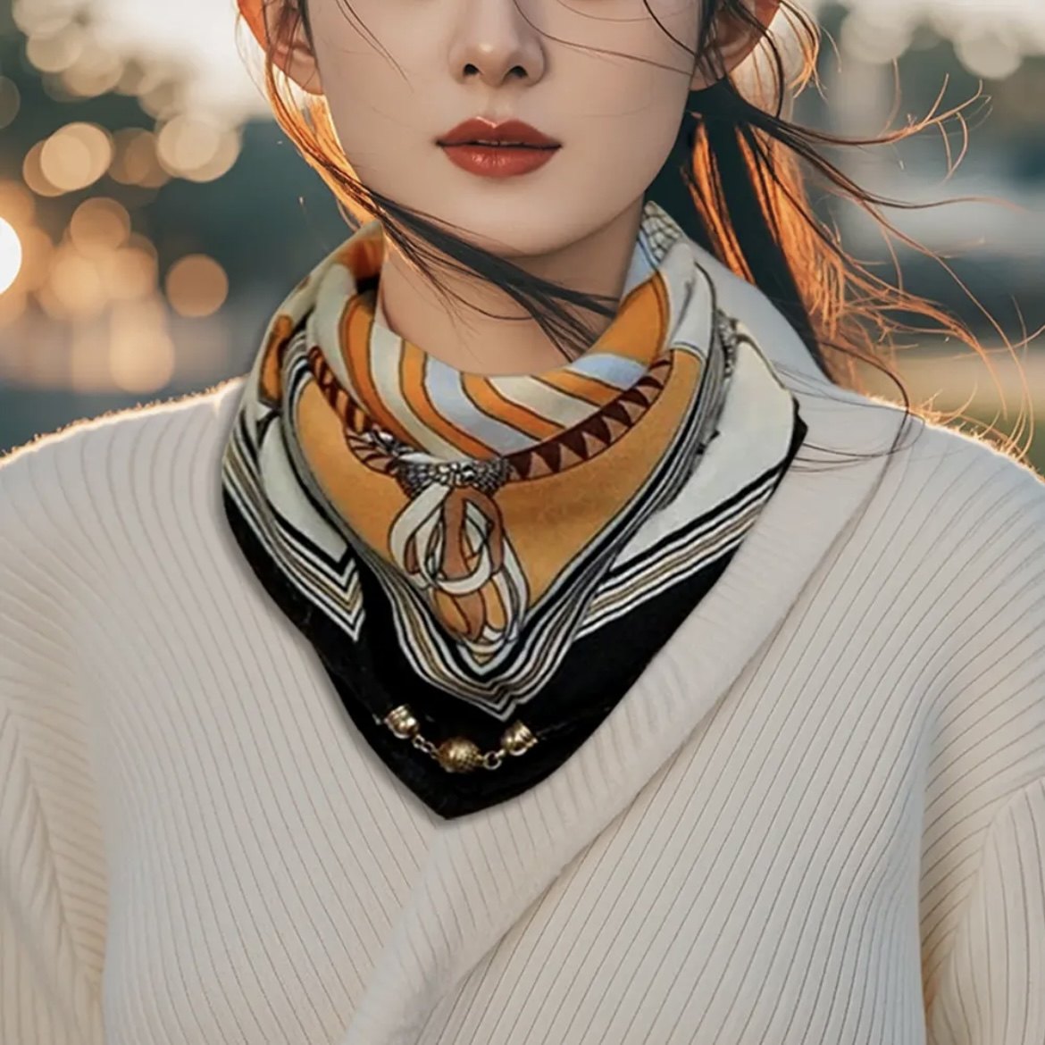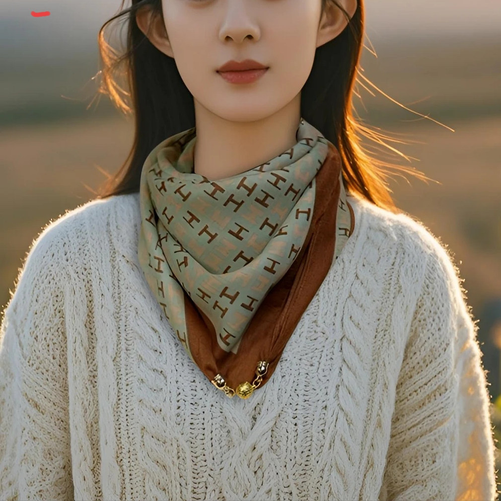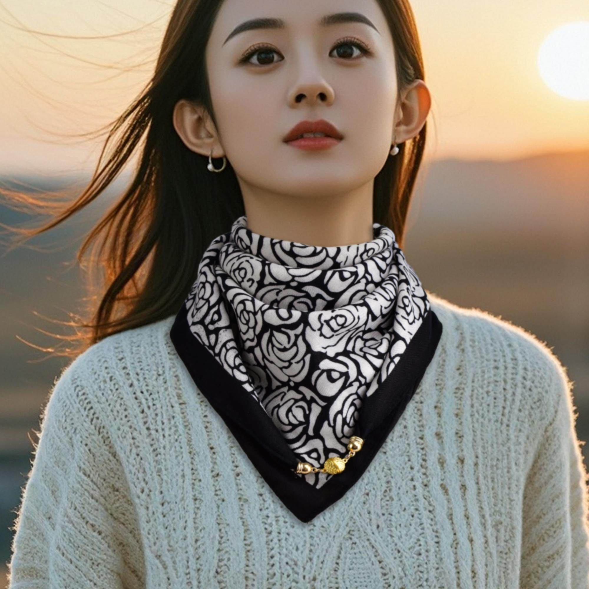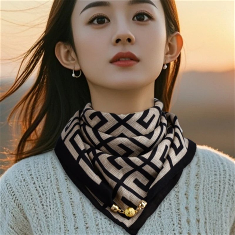 磁吸扣棉麻小方巾丝巾女春秋百搭护颈领巾三角围巾新款保暖围脖冬