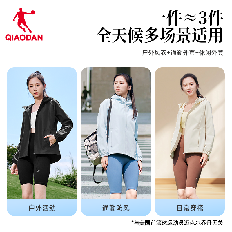 乔丹商场官方运动风衣女宽松户外休闲薄外套冬季新款连帽长袖户外
