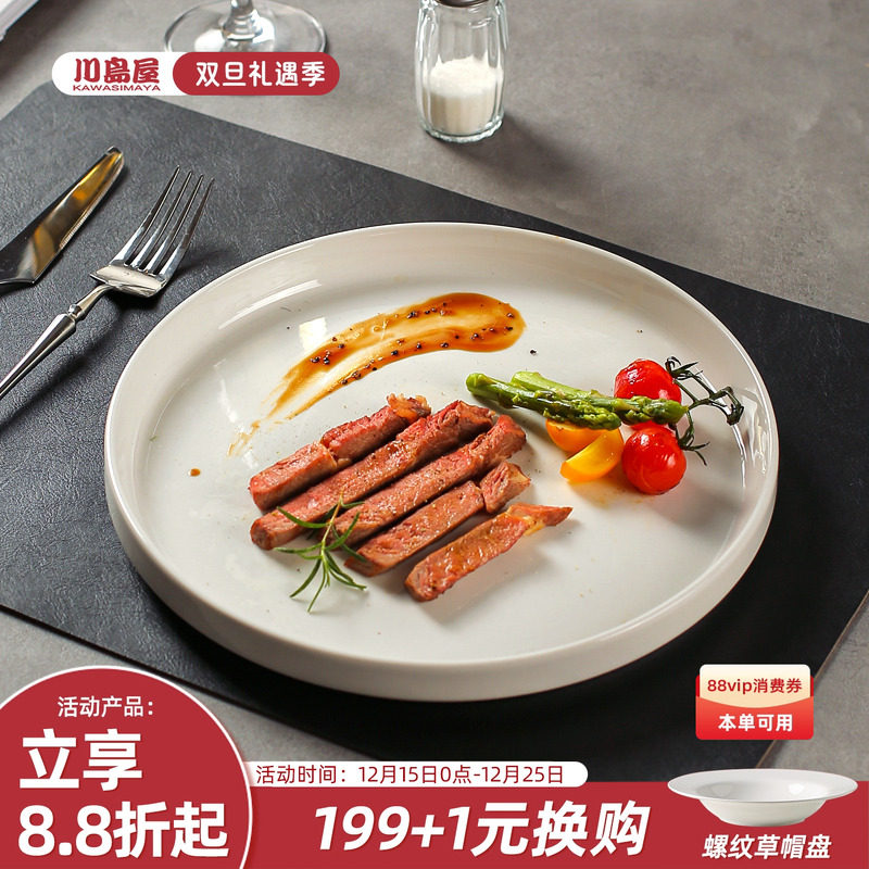 川岛屋牛排餐盘西餐盘家用高级感轻奢白色陶瓷平盘早餐碟子意面盘