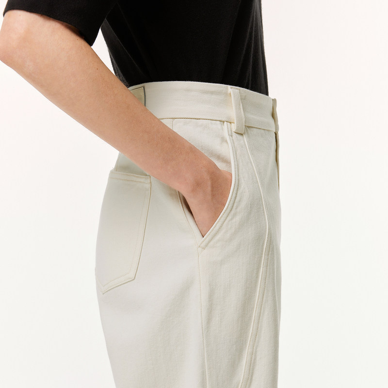 LESS春休闲全棉舒适简约宽松百搭通勤风白色直筒牛仔裤2O3E11220