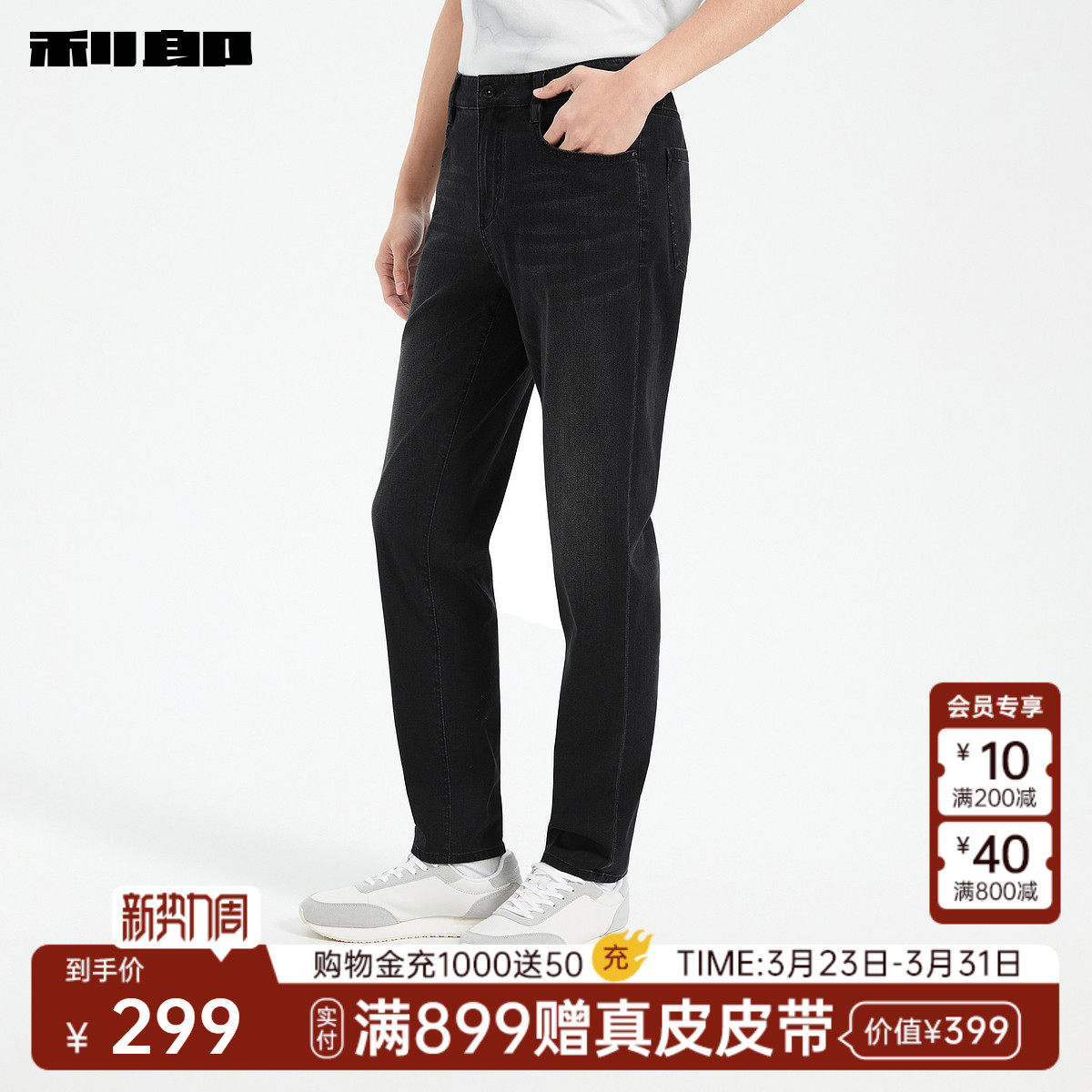 【四面弹力】利郎官方 牛仔裤男长裤中腰夏新款修身小脚裤裤子男