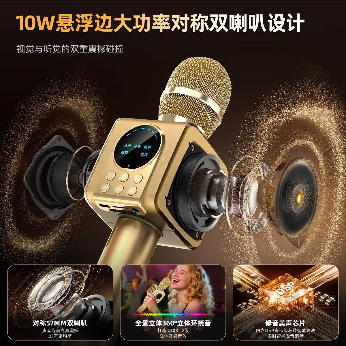 内置DSP声卡 智能降噪美声 消原音 可插TF卡