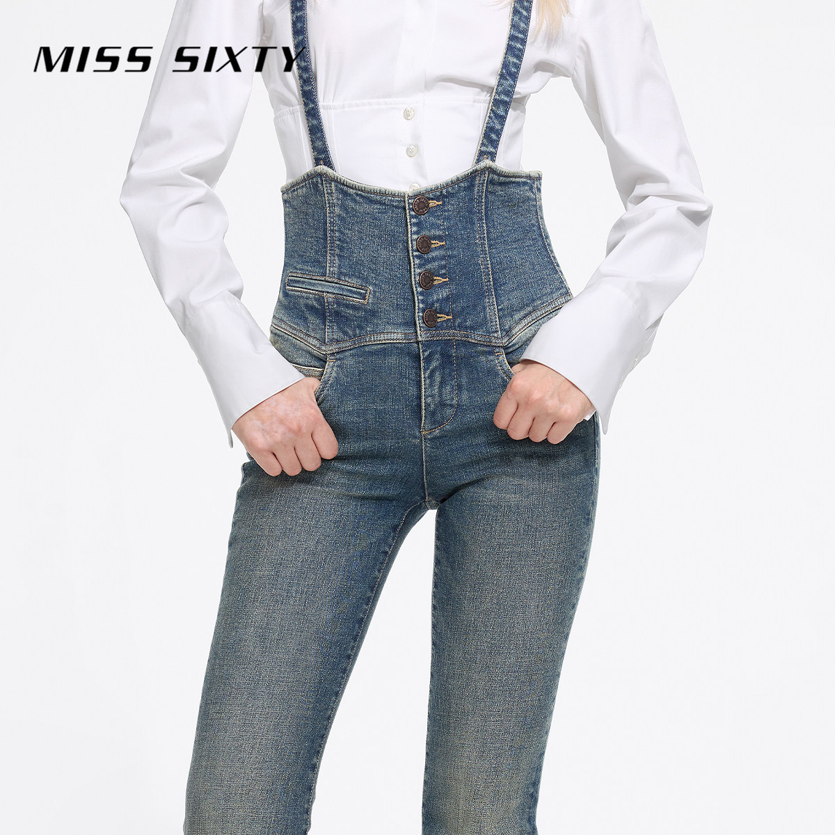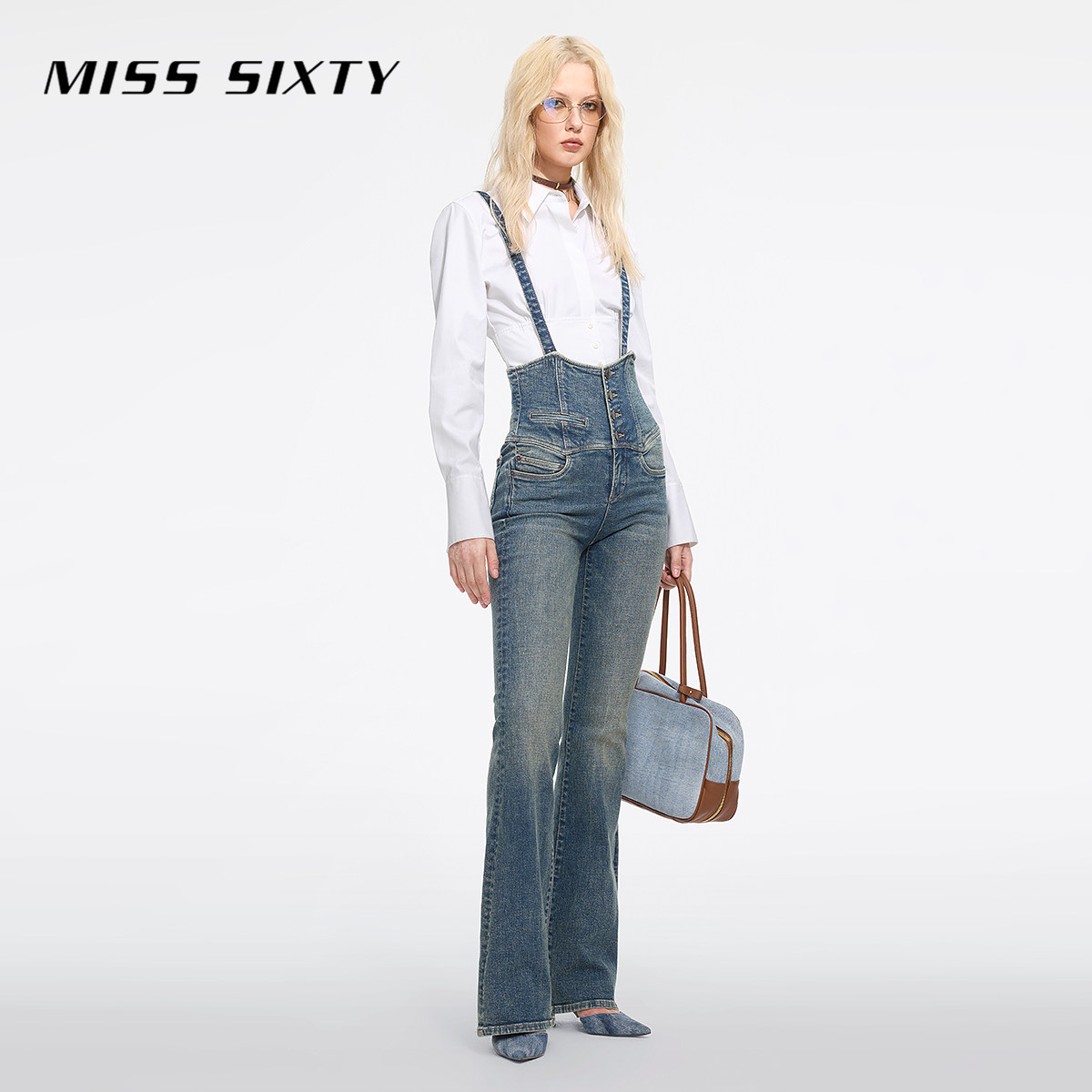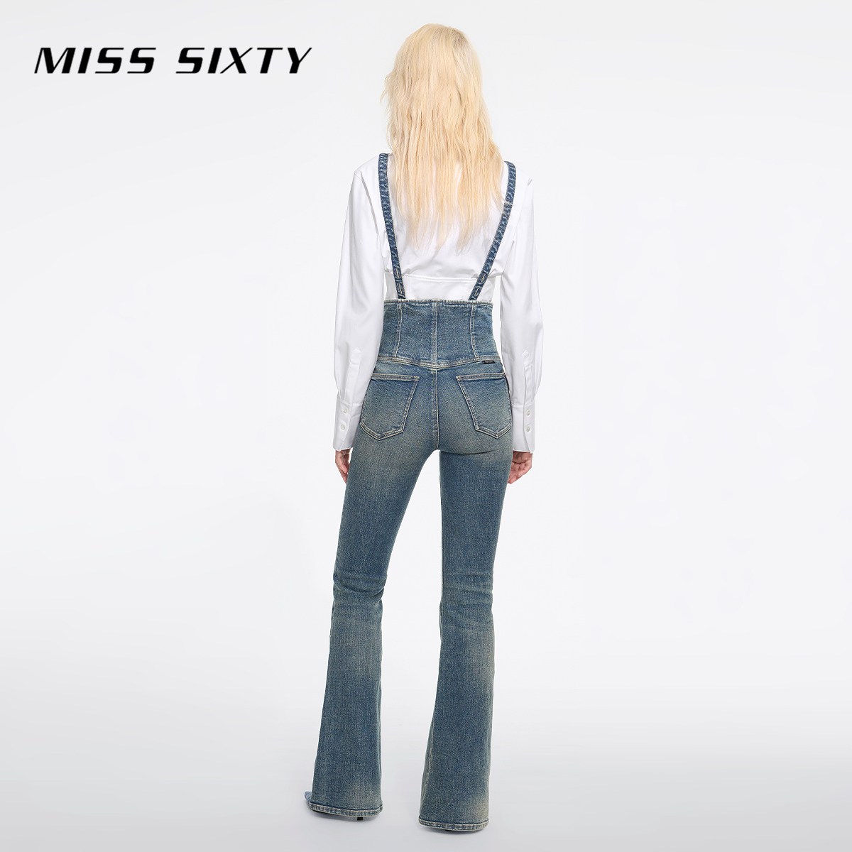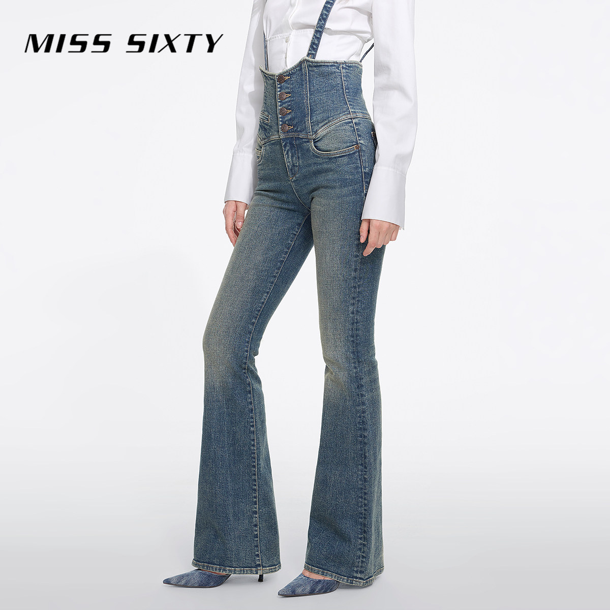 【进口牛仔面料】Miss Sixty2025春秋新款牛仔连体裤复古微喇叭裤