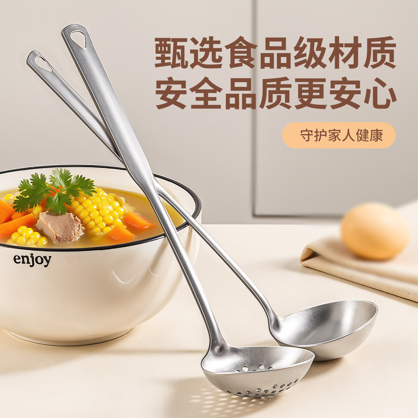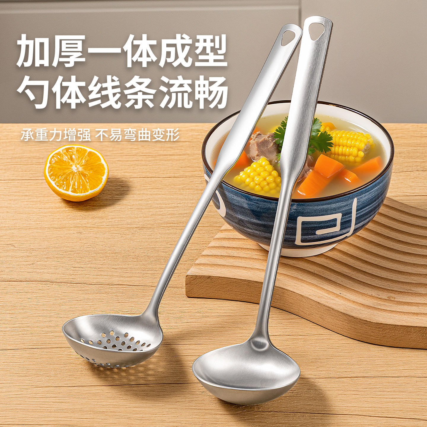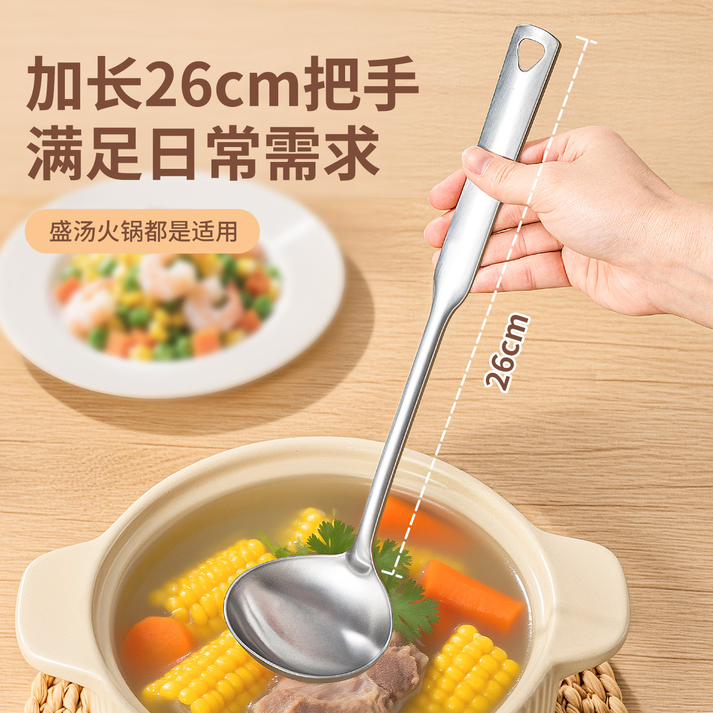 食品级不锈钢汤勺家用大号盛汤勺长柄汤勺子商用餐饮火锅漏勺201