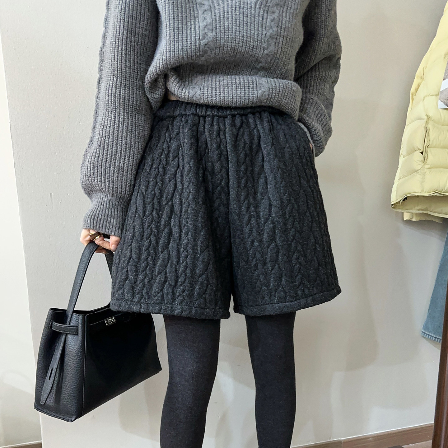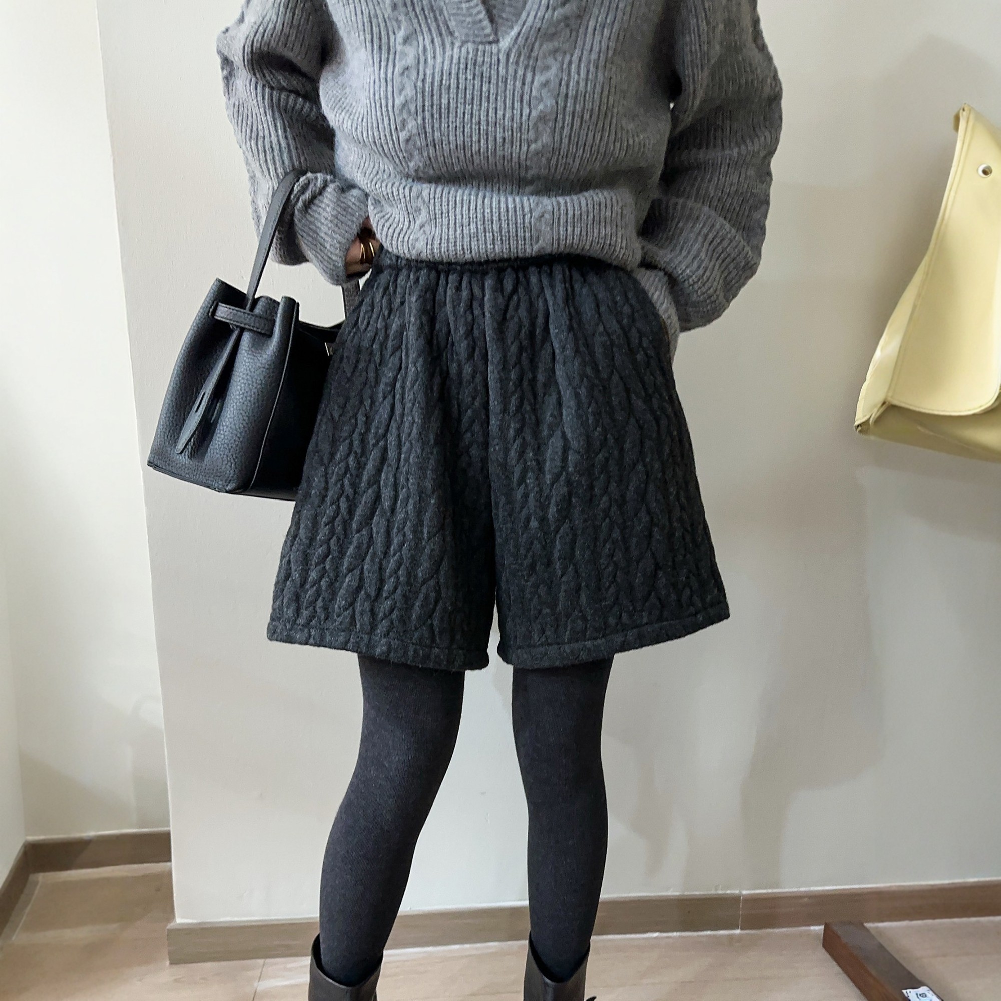 羊毛呢麻花加绒阔腿短裤女欧洲站2025冬装新款欧货女装休闲靴裤潮