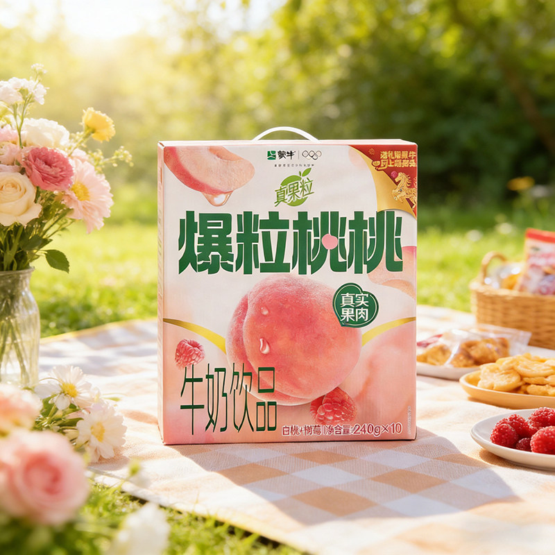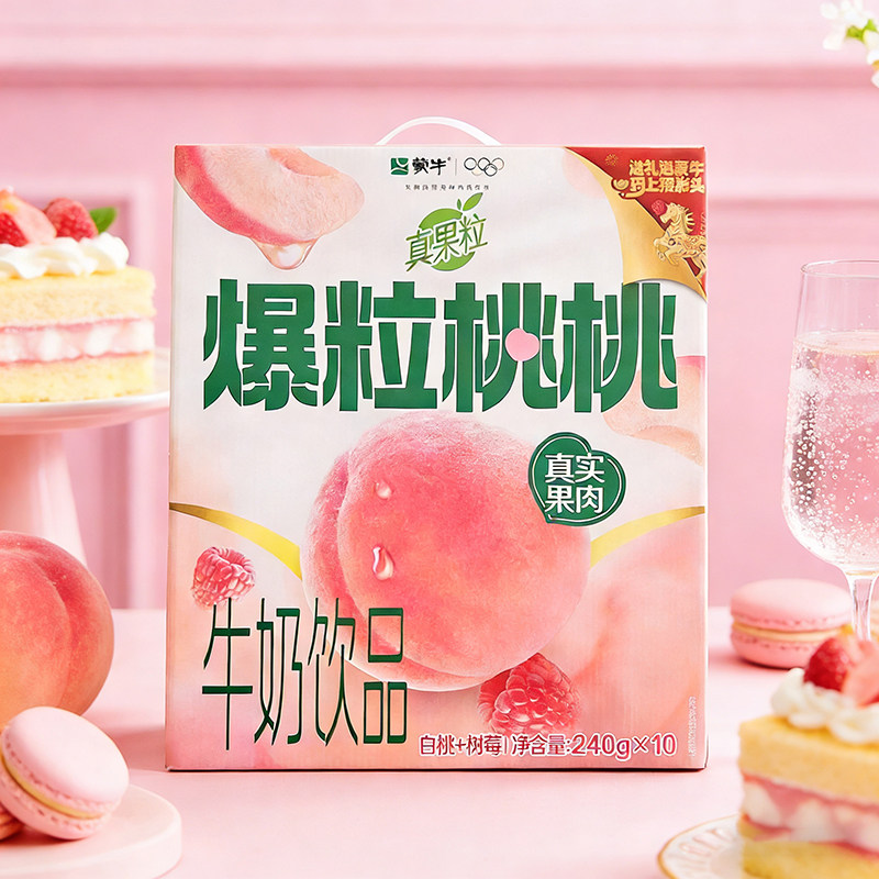 1月蒙牛真果粒白桃树莓240g*10盒高端缤纷系列牛奶饮品饮料