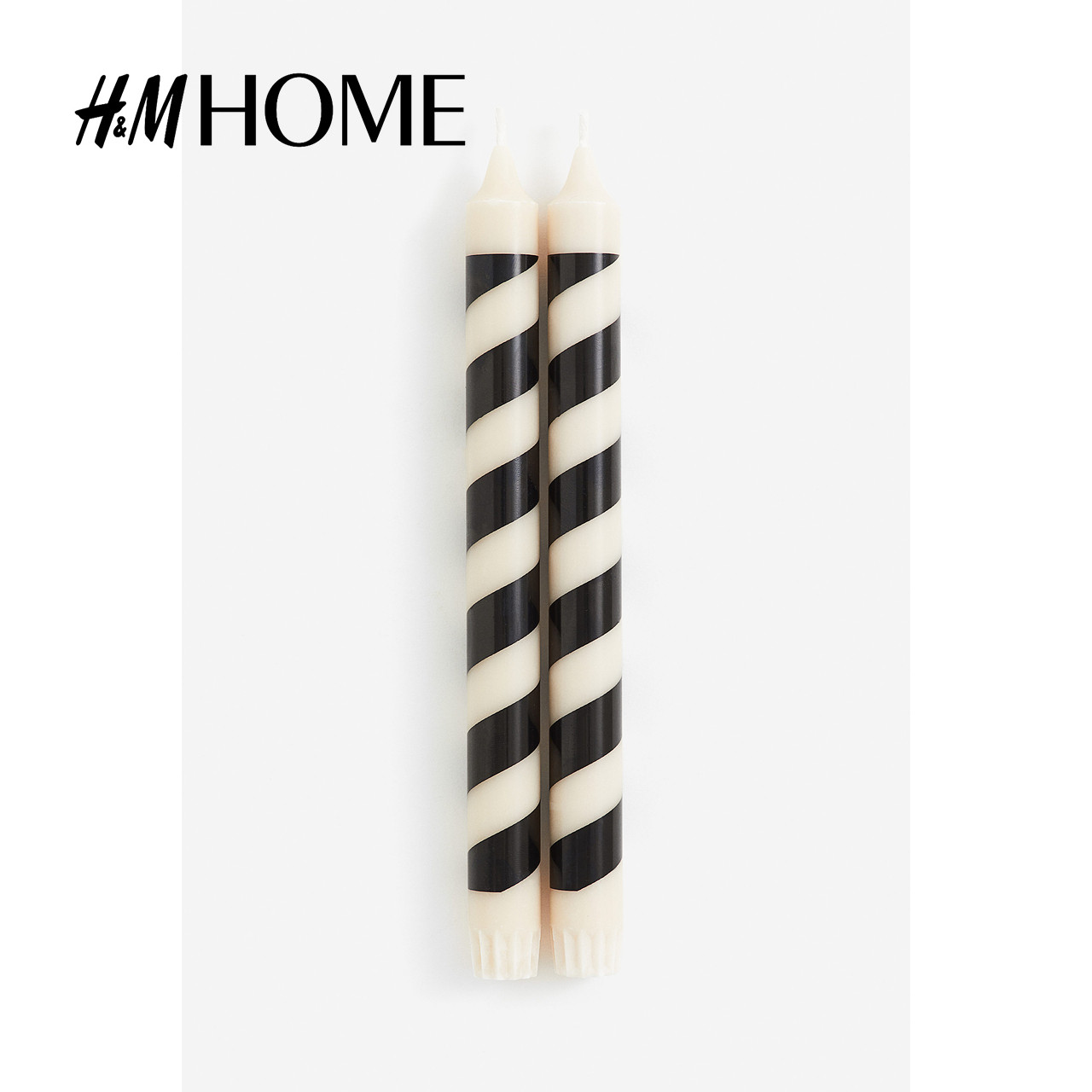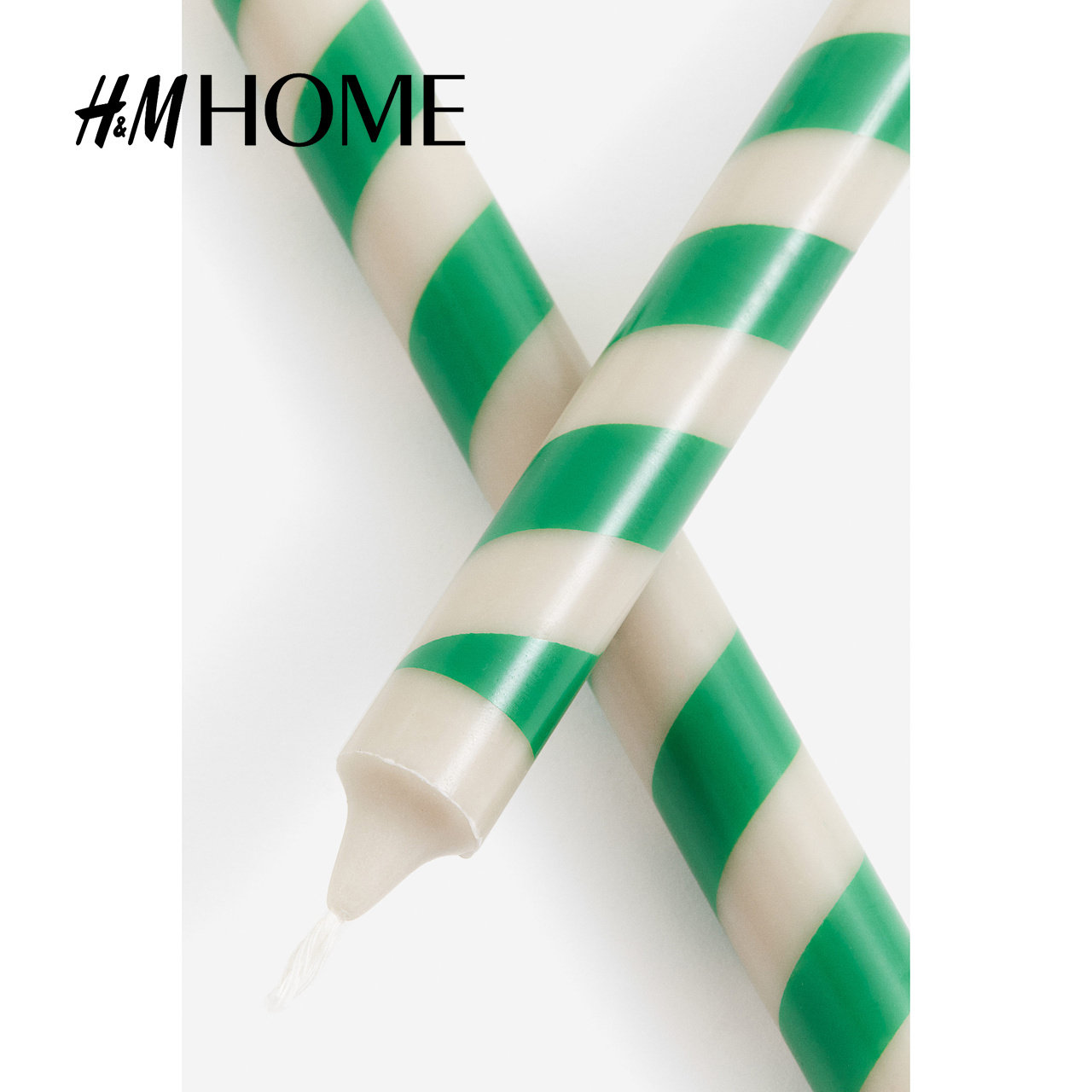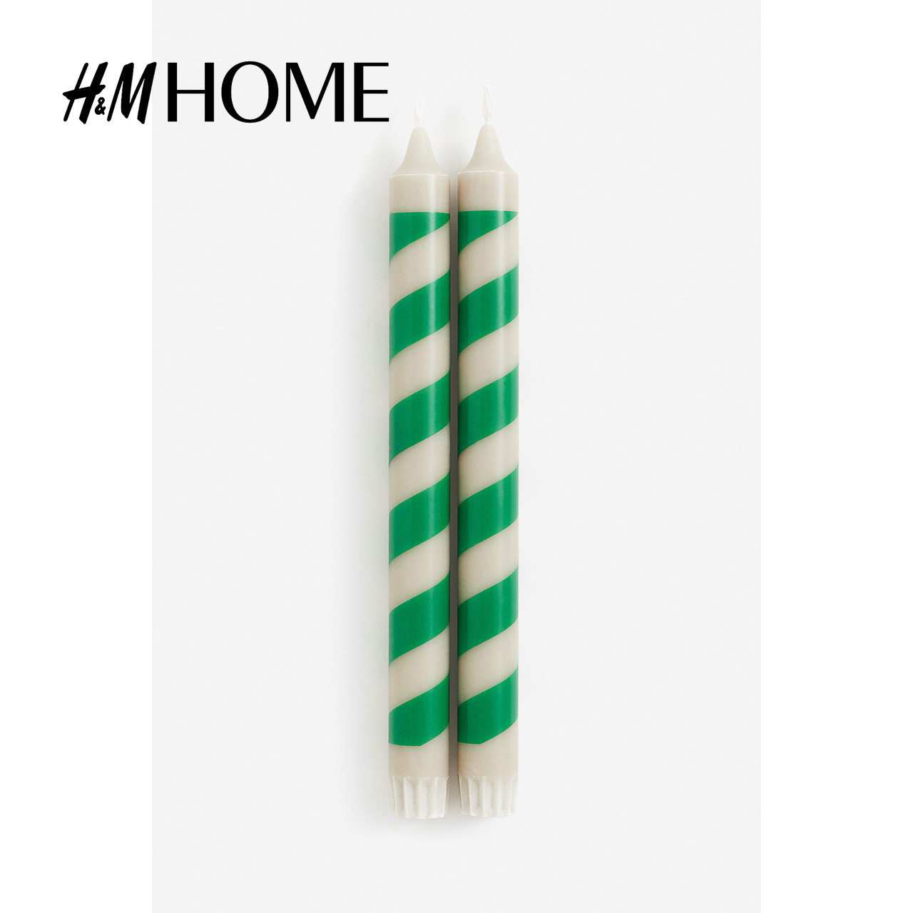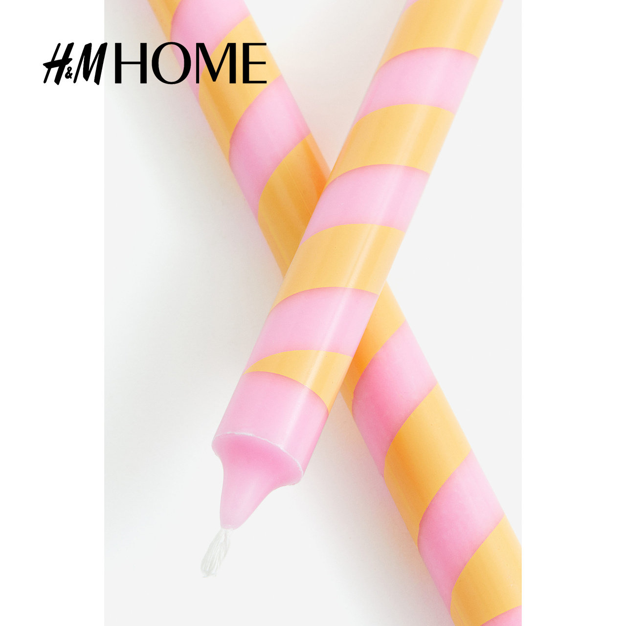 HM HOME家居饰品无味蜡烛2支装色彩绚丽条纹造型装饰蜡烛1111955