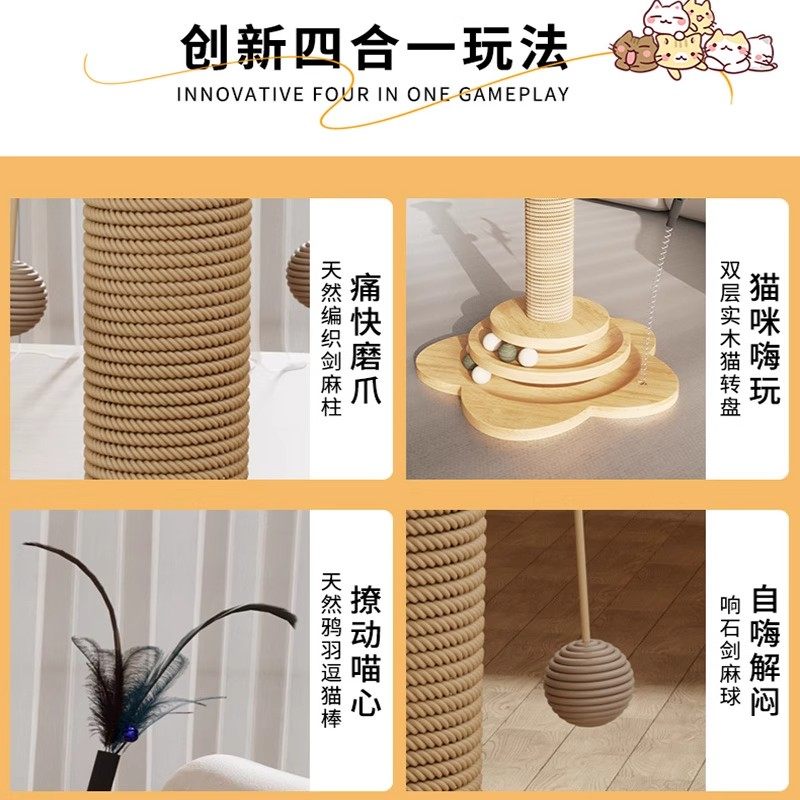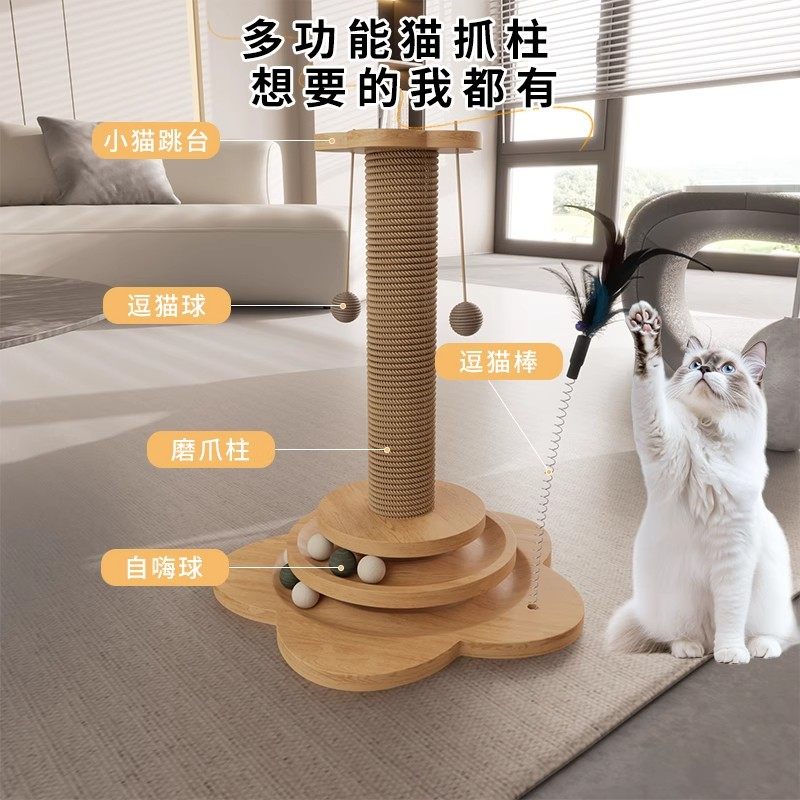猫抓板耐磨不掉屑小猫咪爪柱自嗨解闷逗猫棒麻绳猫爬架一体猫玩具