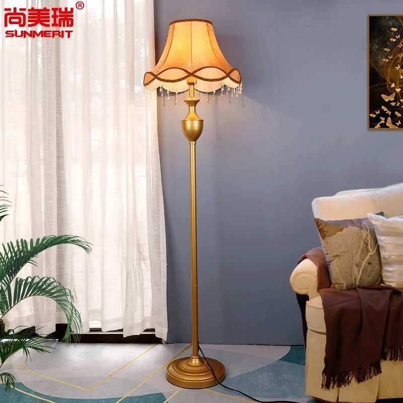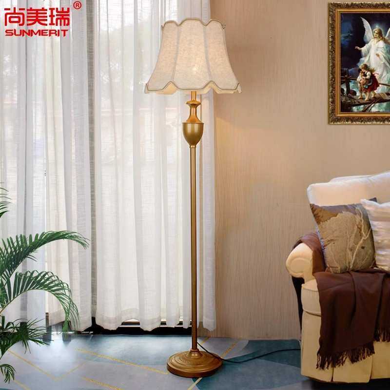 欧式落地灯客厅美式乡村落地台灯立式书房卧室床头中式酒红棕古铜