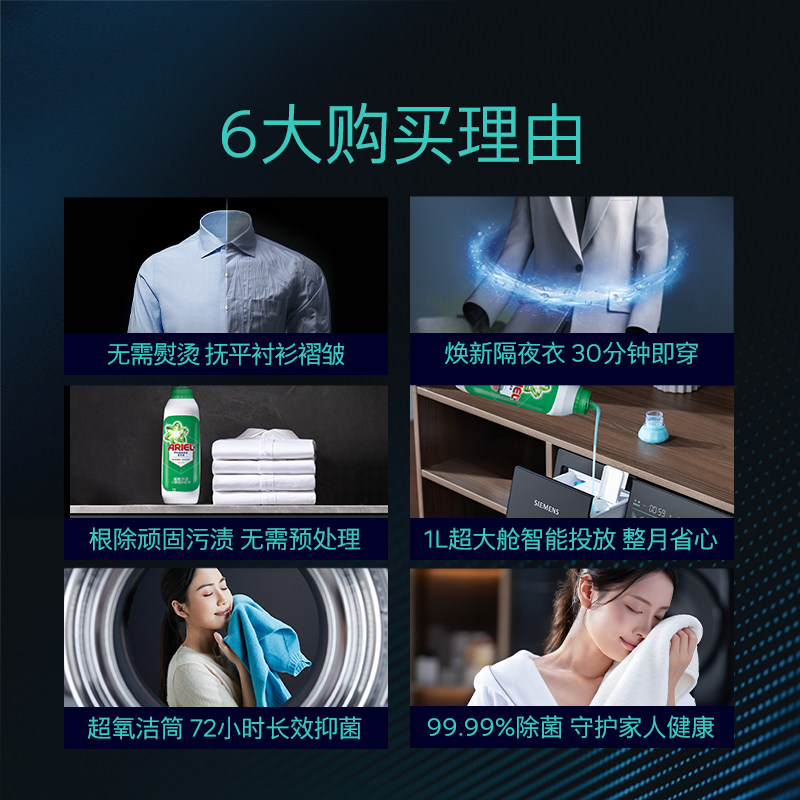 【小幸熨】西门子10公斤滚筒全自动除皱超氧变频平嵌iQ500洗衣机