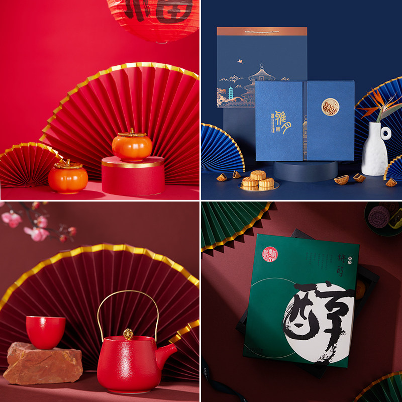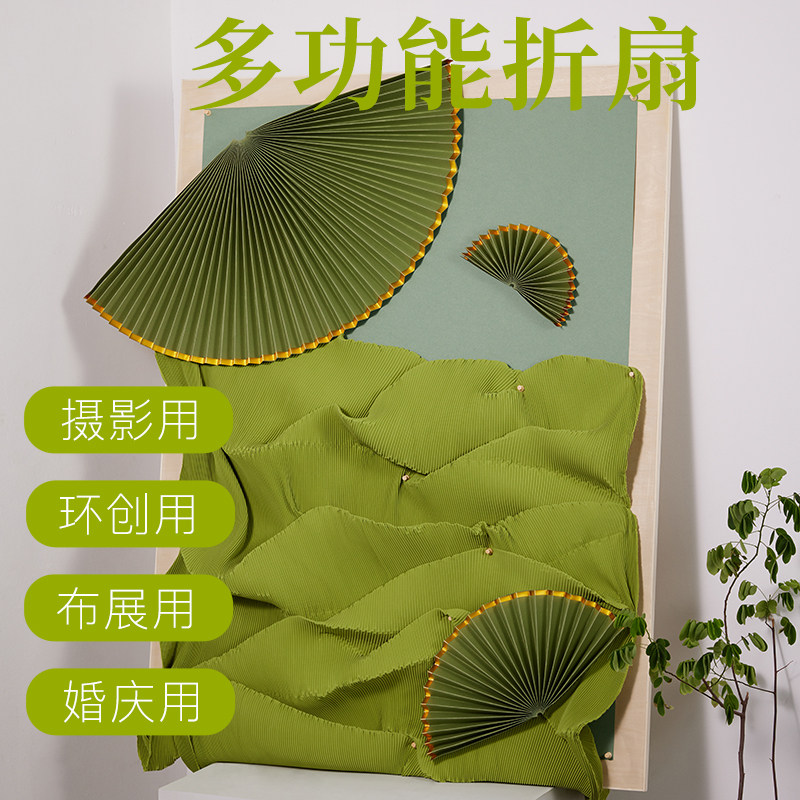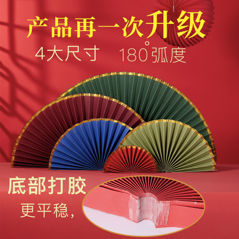 金边手工半圆折扇摄影道具拍照摆件国潮新年背景装饰婚庆布置纸扇