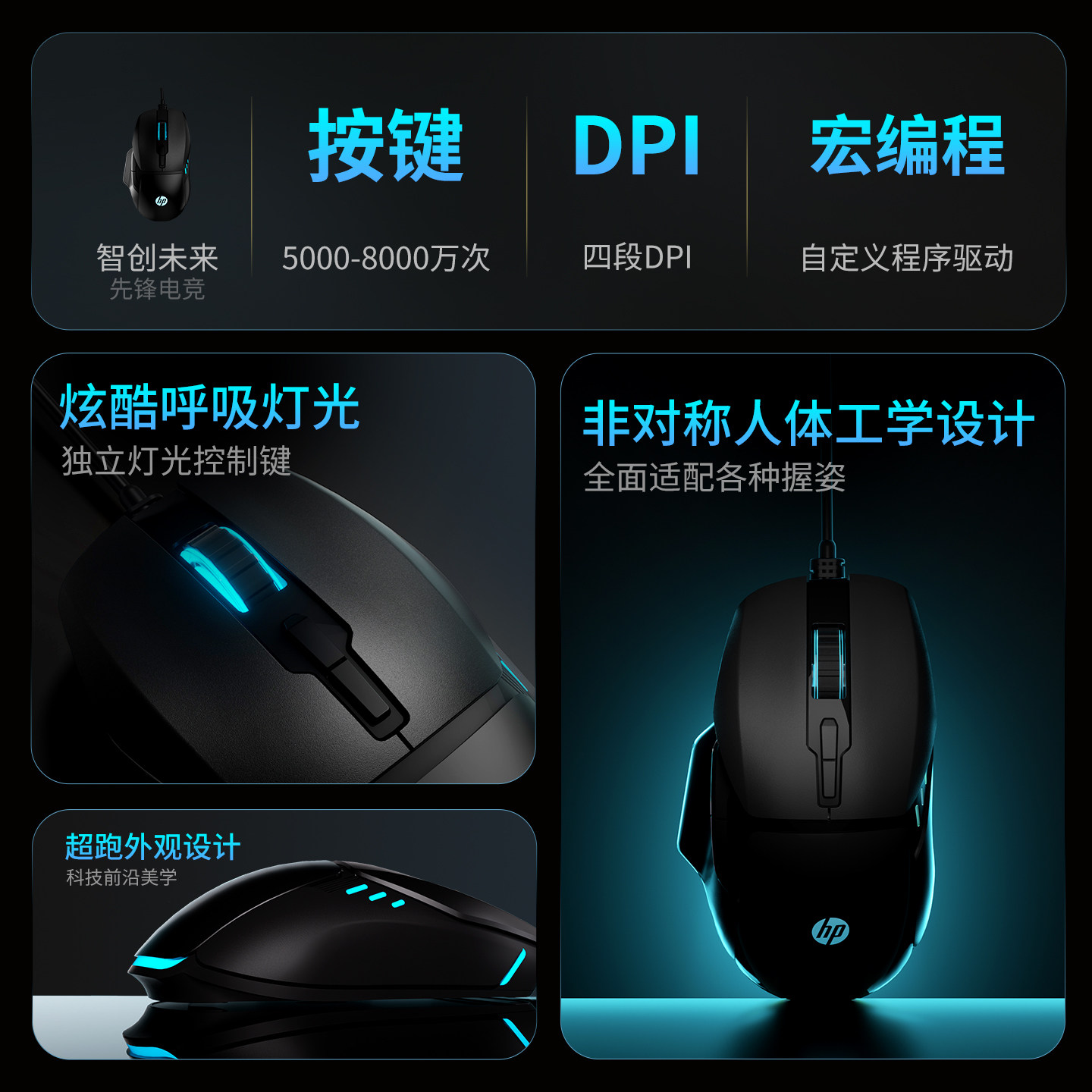HP惠普G200机甲版有线鼠标游戏电竞RBG多色电脑办公静音人体工学