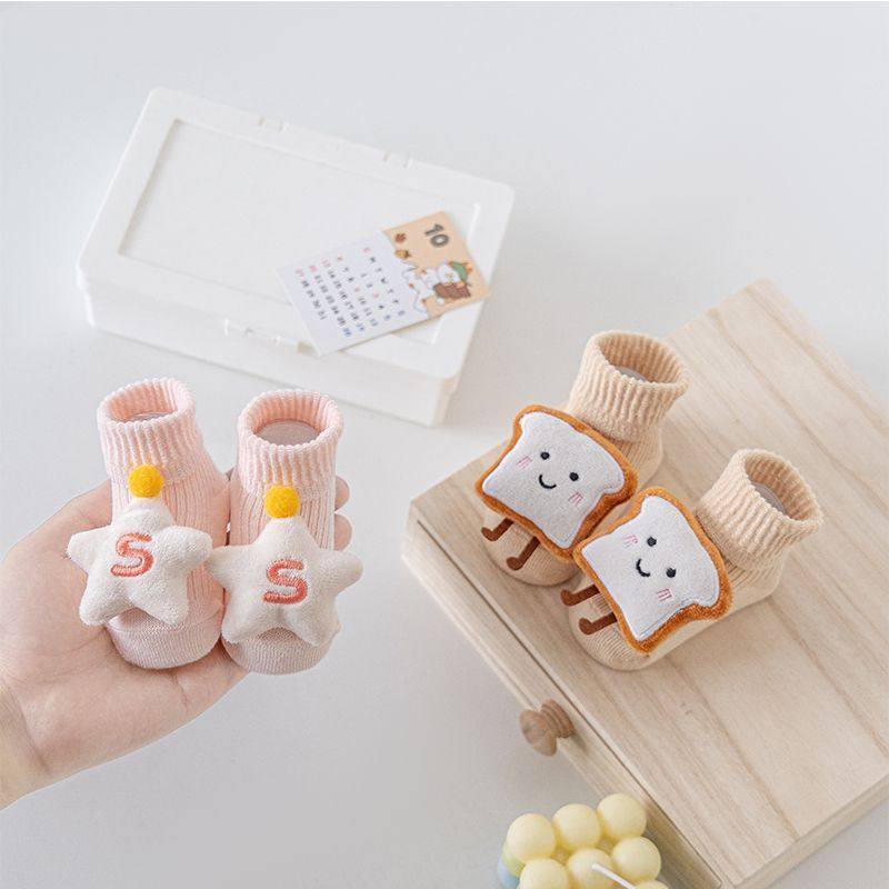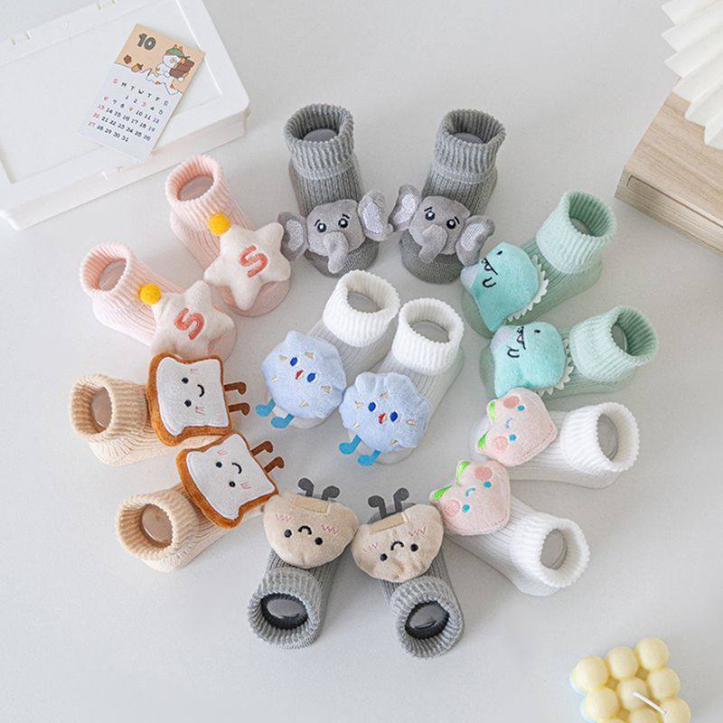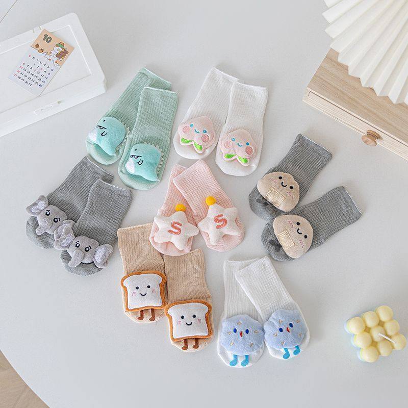 婴儿袜子新生宝宝春秋防滑卡通地板袜可爱新生儿公仔学步中筒袜子