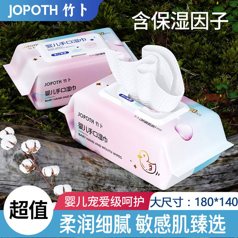婴幼儿湿巾纸新生手口专用屁宝宝幼儿童80抽家庭实惠大包装湿纸